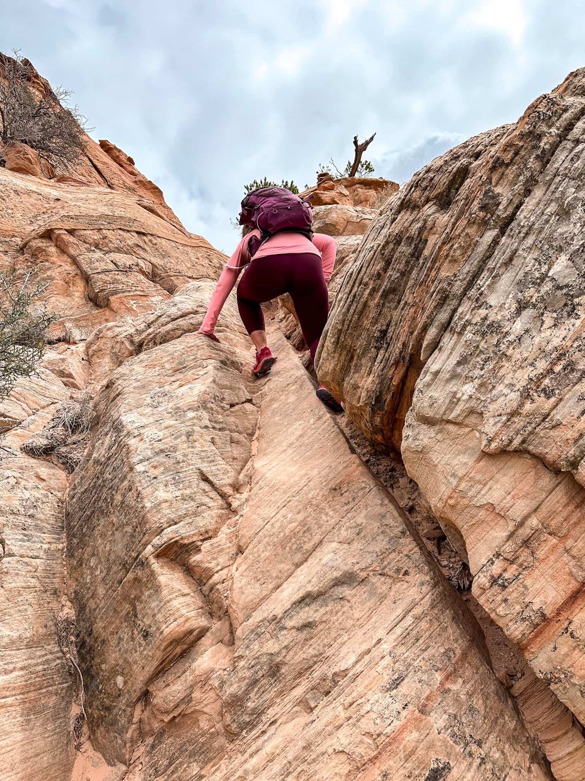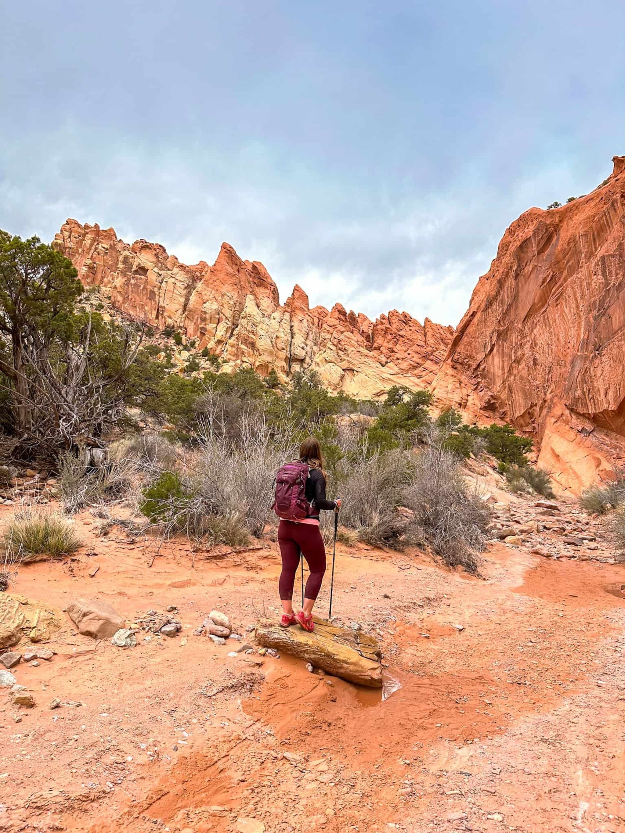Trailhead Parking Difficulty: Moderate-difficult. You need a high-clearance vehicle to drive up the wash to the trailhead. There are places for low-clearance vehicles to park near Burr Trail Road, but this will add additional miles to the hike. Do not attempt to drive to the trailhead if rain is in the forecast due to flash flood risks!