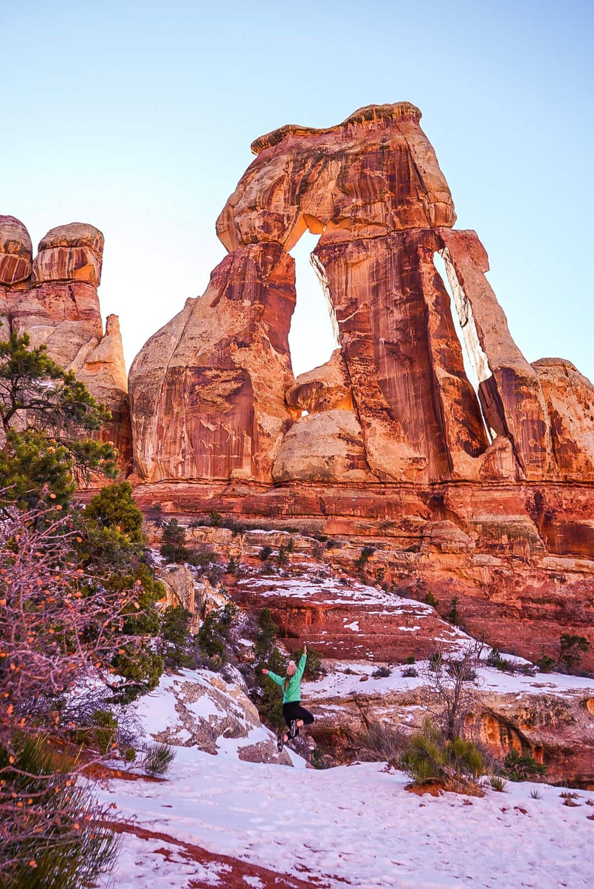 The hike to Druid Arch branches off from the Chesler Park Trail, so if you aren’t up for a 10-mile hike, you can still explore this lesser-trafficked area of Canyonlands National Park. Be prepared for a full day of hiking and make sure your camera is charged because you’re going to want to take lots of photos on this hike!