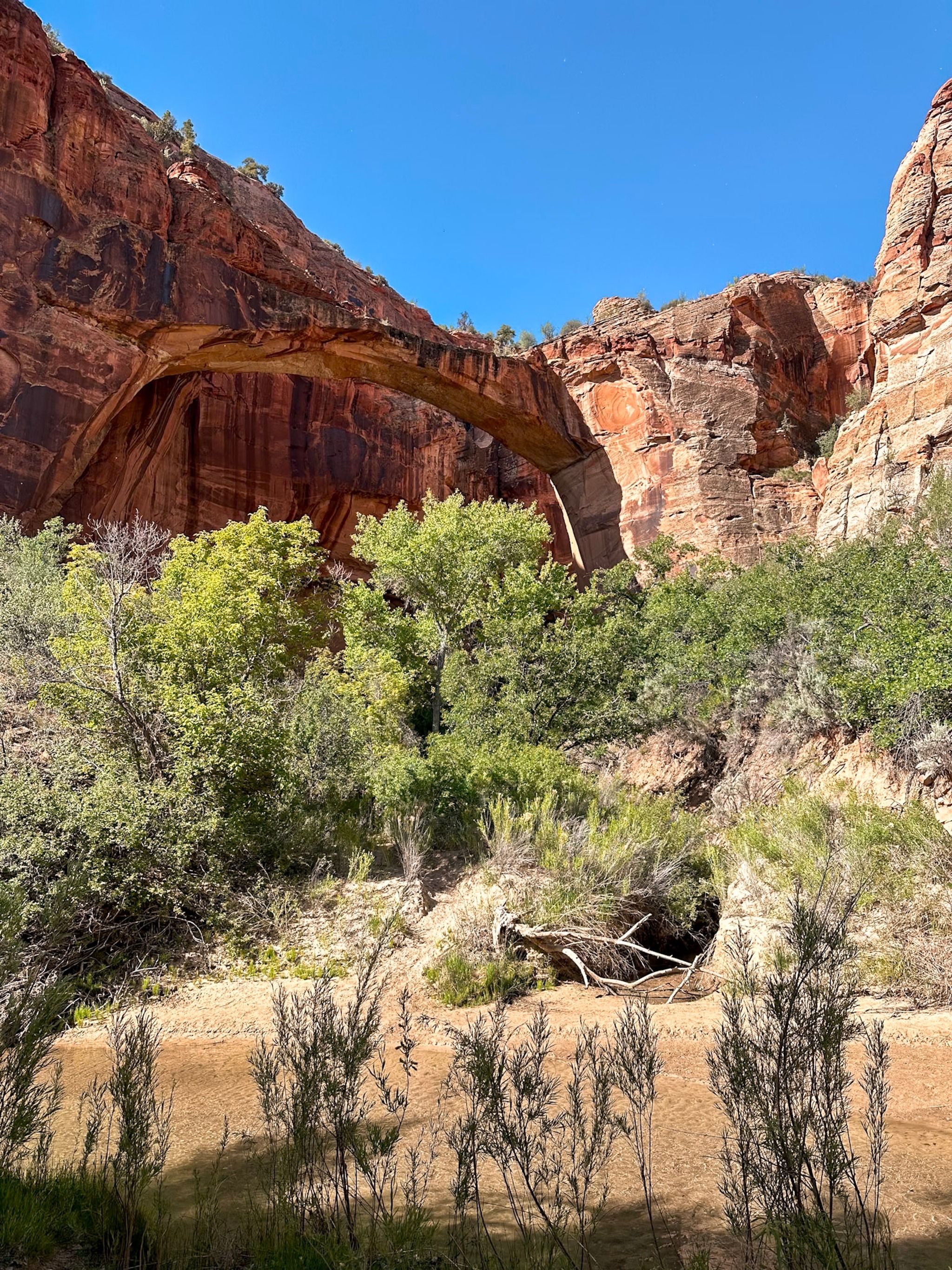 The Escalante River Trailhead is a popular starting point for hikers looking to explore along the Escalante River in southern Utah. You can really hike as far as you want in the canyon, but many hikers opt to hike to Escalante Natural Bridge. It's a great option for both experienced hikers and those seeking a big visual payoff with minimal effort. You have to cross the Escalante River along the trail, so it's a great hike to do when it's warm or if you're hiking with dogs.