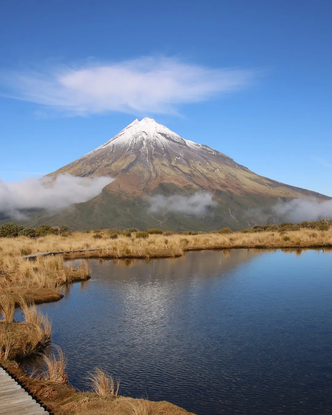 It usually takes around 1 hour 45 minutes to reach the Pouakai Hut and then another 15 minutes to get to the tarn. When you arrive, the crystal-clear water reflects the surrounding mountains perfectly, if it's not too windy. It’s a picture-perfect moment you don’t want to miss. If you’re there around sunrise or sunset, the colors are especially magical.