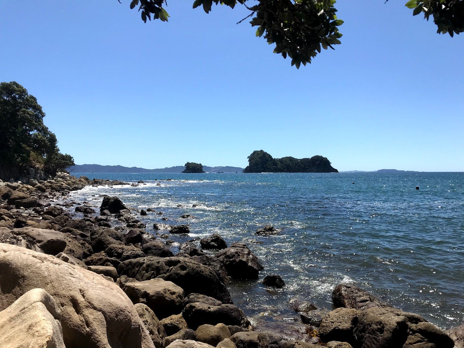 Boulder strewn beach with snorkeling