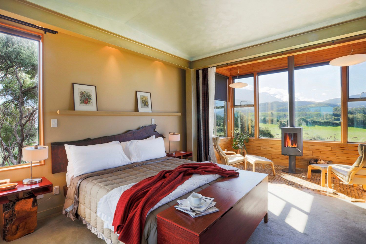 Hapuku Lodge + Tree Houses is a unique and luxurious accommodation situated in the picturesque South Island of New Zealand. It is located on a deer breeding farm just a kilometre away from Brown’s Beach and the Mangamaunu Bay, and 12 kilometres North of the renowned eco-marine town of Kaikoura. Accommodation ranges from five-star lodge rooms to unforgettable treehouses offering ultimate privacy and seclusion. Guests can explore the local region with tailored experiences that take advantage of the beautiful landscape. Dining is an absolute delight, catering to a range of tastes with seasonal local cuisine crafted with waterside ingredients. Whatever you desire, Hapuku Lodge + Tree Houses provides an unforgettable stay sure to create lifetime memories!