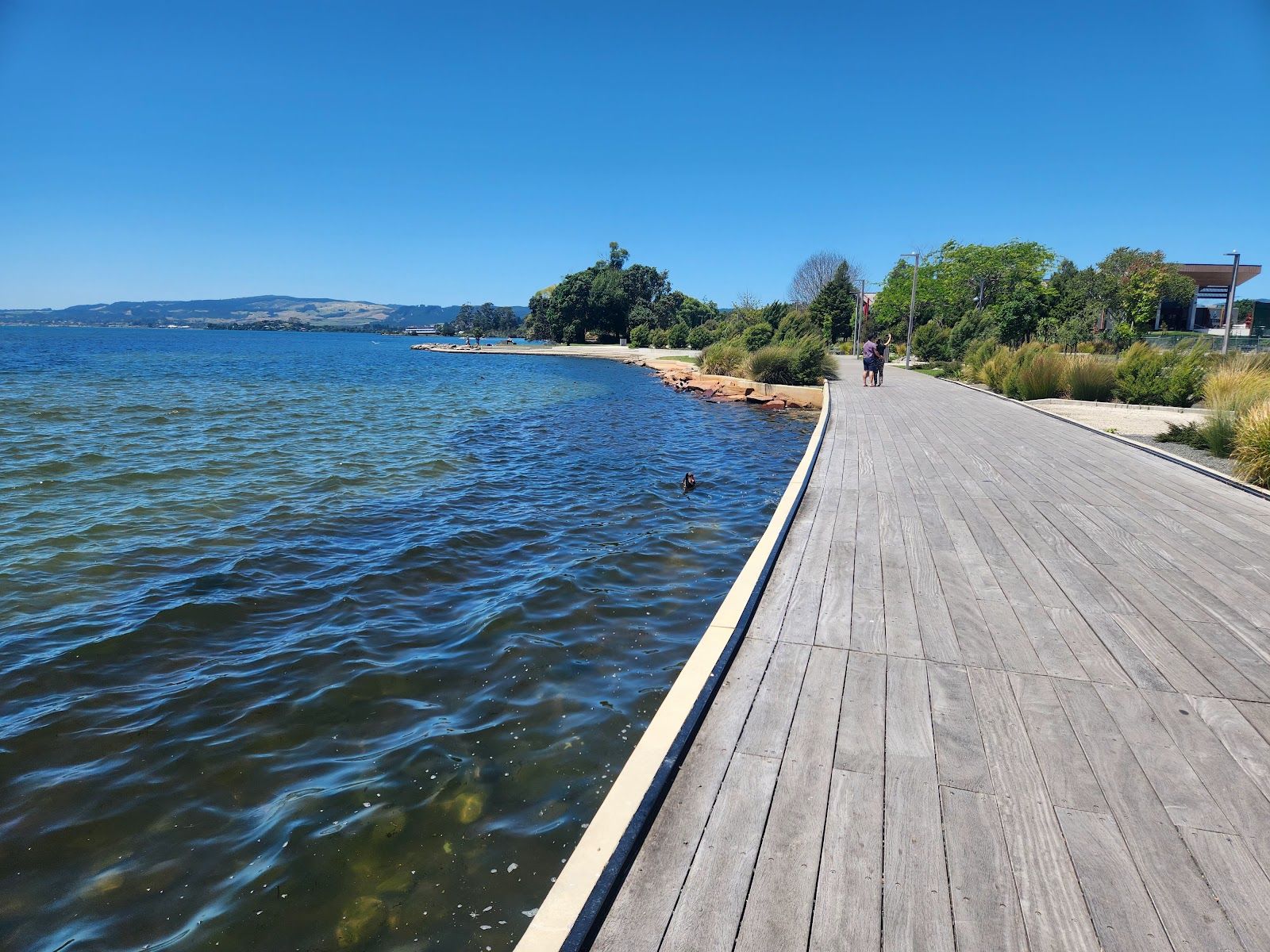 Scenic lakeside boardwalk