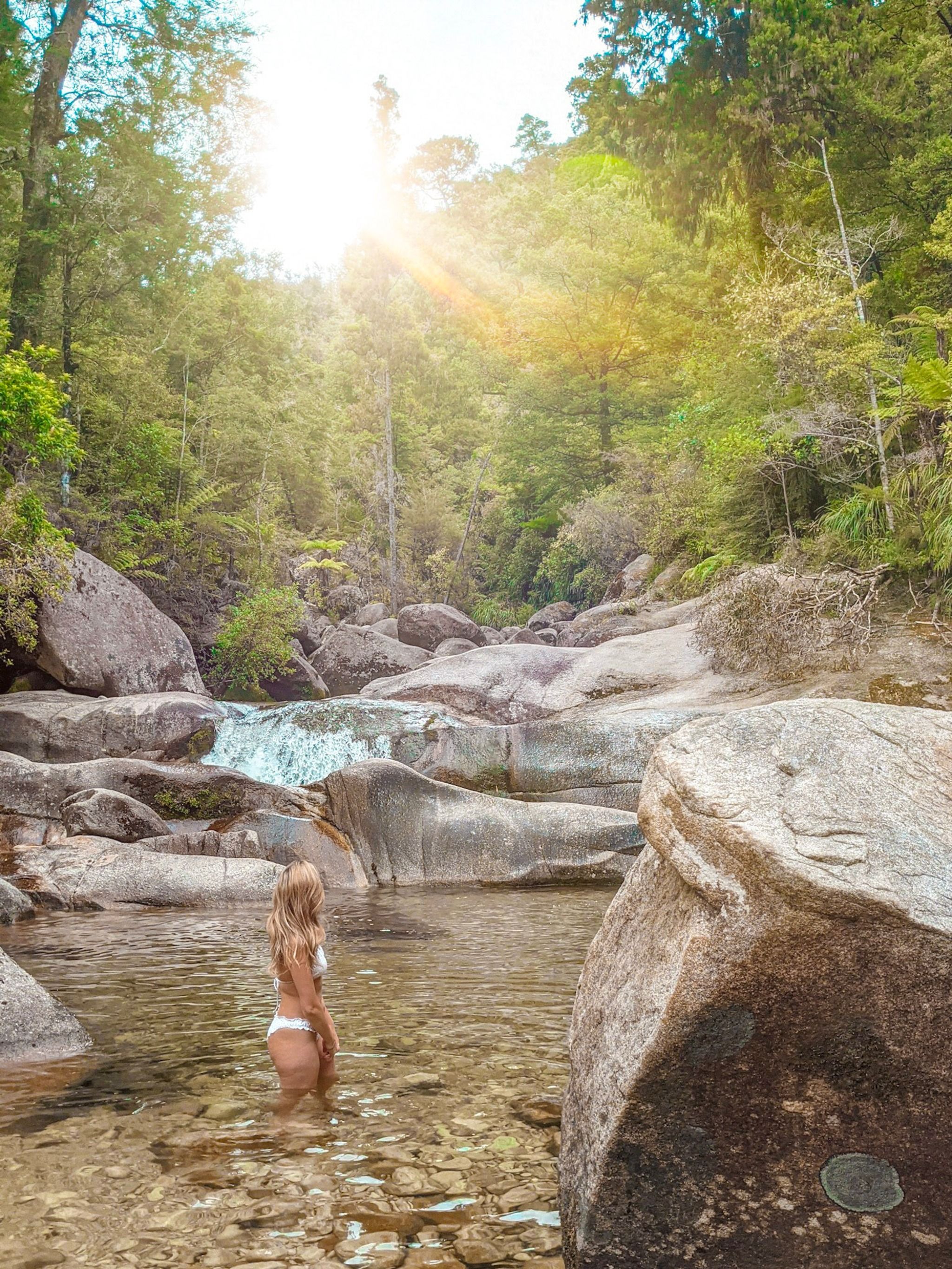 Picturesque rock pools with a naturally formed rockslide! Get to it by taking the Abel Tasman water taxi to Anchorage Bay and then walk 40 mins to the pools.