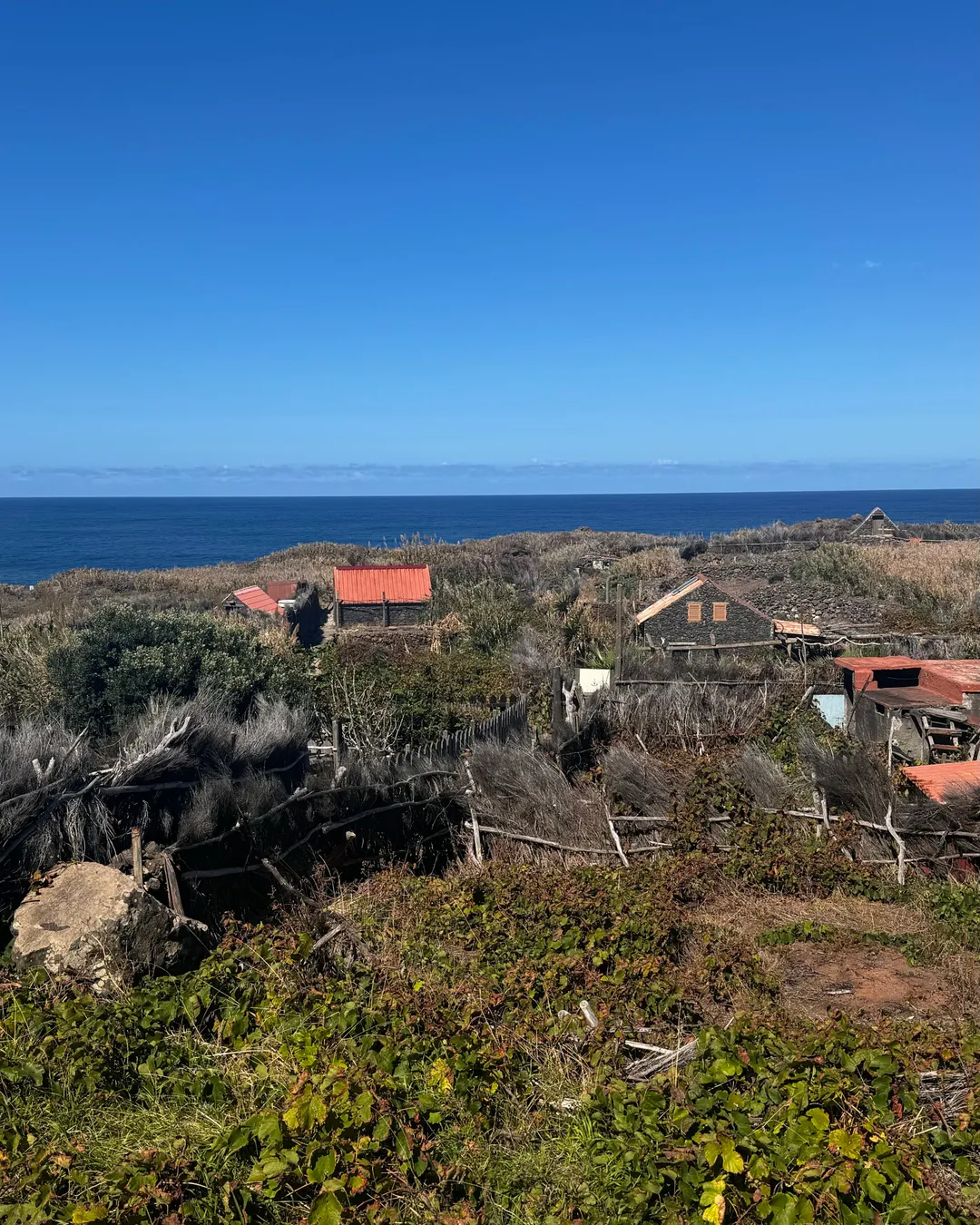 The fajã below was once home to farming families who grew grapes and vegetables in total isolation. Today only ruins remain, but the path connecting sea to plateau is still used by fishermen – a glimpse into Madeira’s old coastal life.