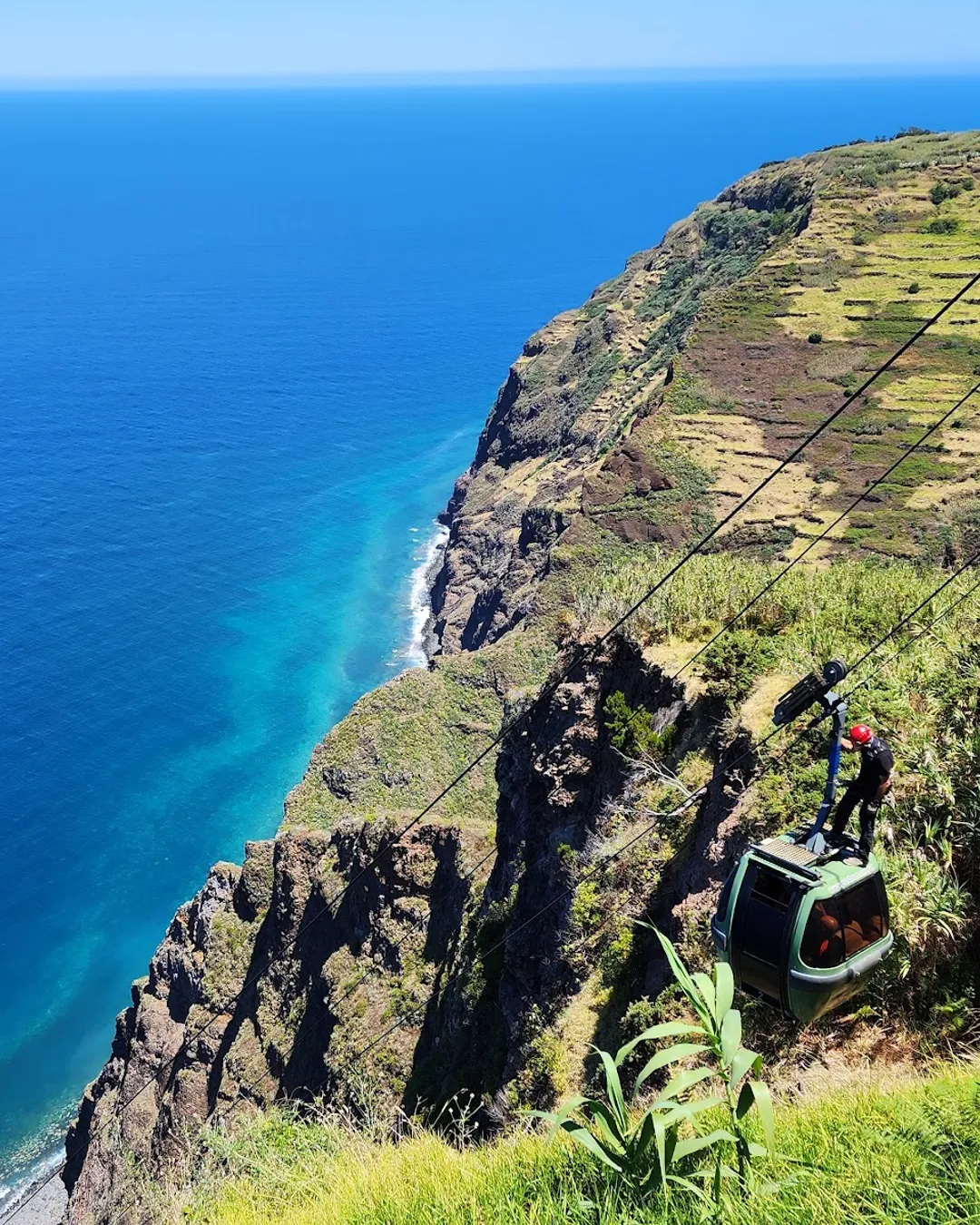 This is no ordinary cable car. Achadas da Cruz drops almost vertically from the Paul da Serra plateau to the tiny Fajã da Quebrada Nova on the wild northwest coast. The ride is short but unforgettable – sheer cliffs, Atlantic waves, and that “am I really doing this?” feeling.