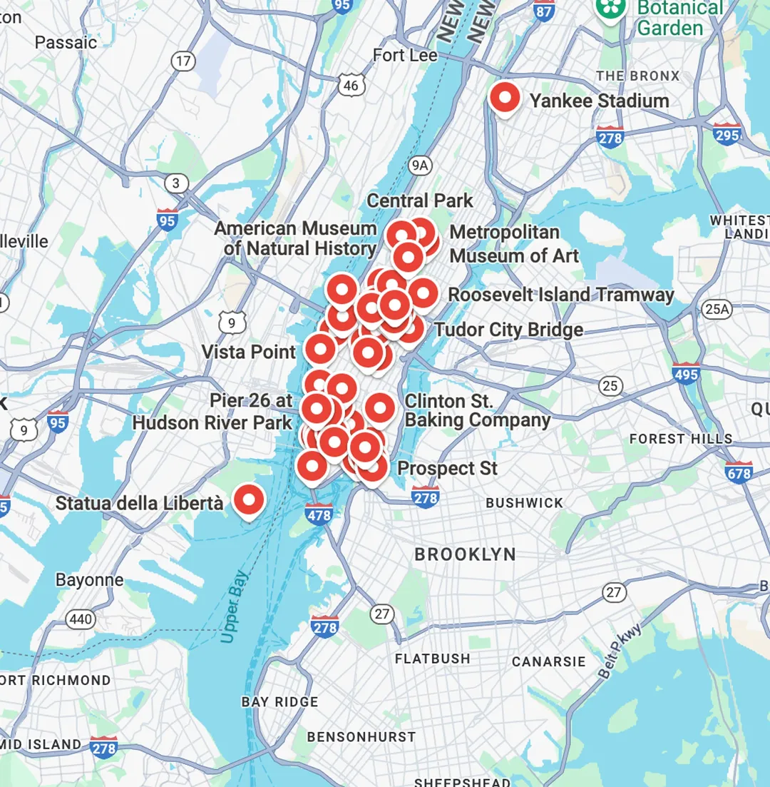 La mia guida di 100+ pagine per scoprire New York al meglio: itinerari dettagliati, mappe interattive collegate a Google Maps, consigli pratici, curiosità cinematografiche, location iconiche di film e serie TV, ristoranti provati da me, e attività imperdibili.
