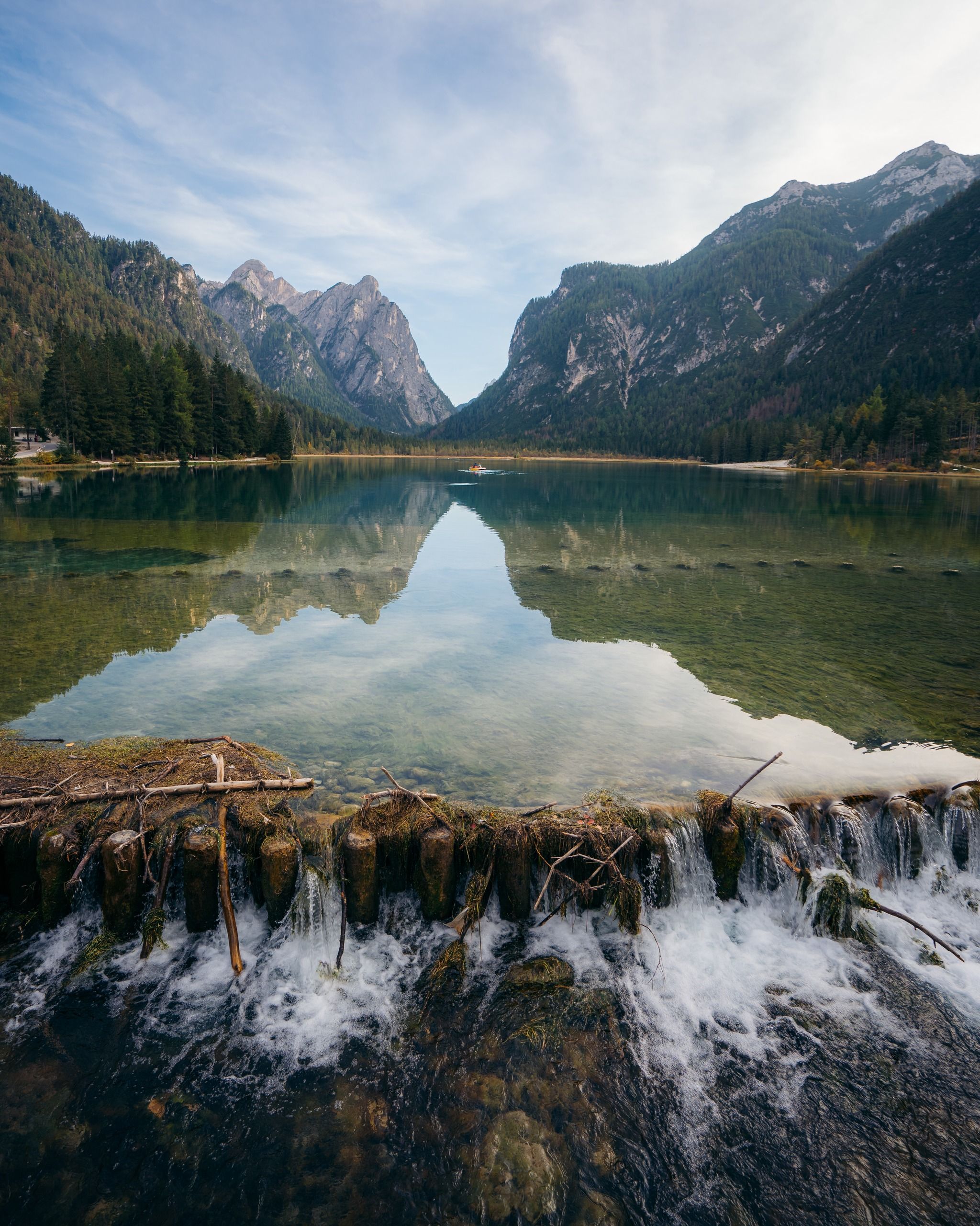 Stunning mountain lake in Dolomites