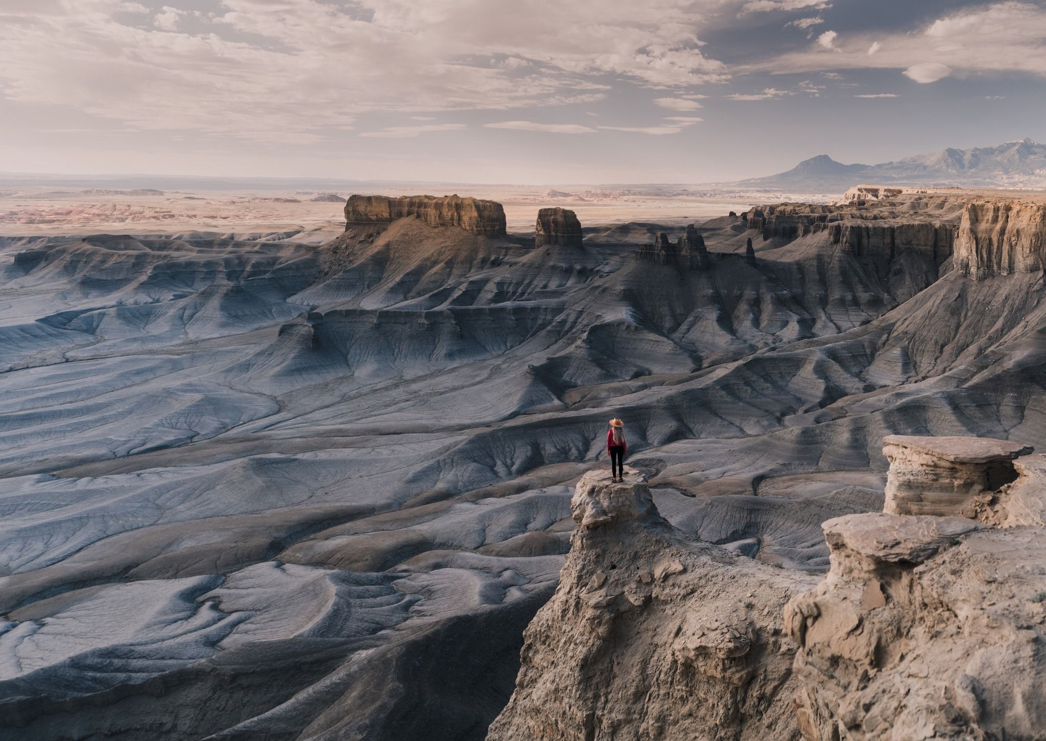 Often described as a "lunar landscape on Earth," this remote vista overlooks a vast expanse of grey badlands that stretch toward Factory Butte and the colorful terrain below the Skyline Rim. With its otherworldly topography and big skies, the overlook is a favorite among photographers, campers, and stargazers.Skyline Overlook (Moonscape Overlook) near Hanksville, Utah, offers one of the most surreal and dramatic views in the American Southwest.