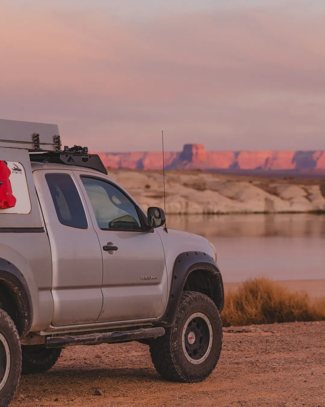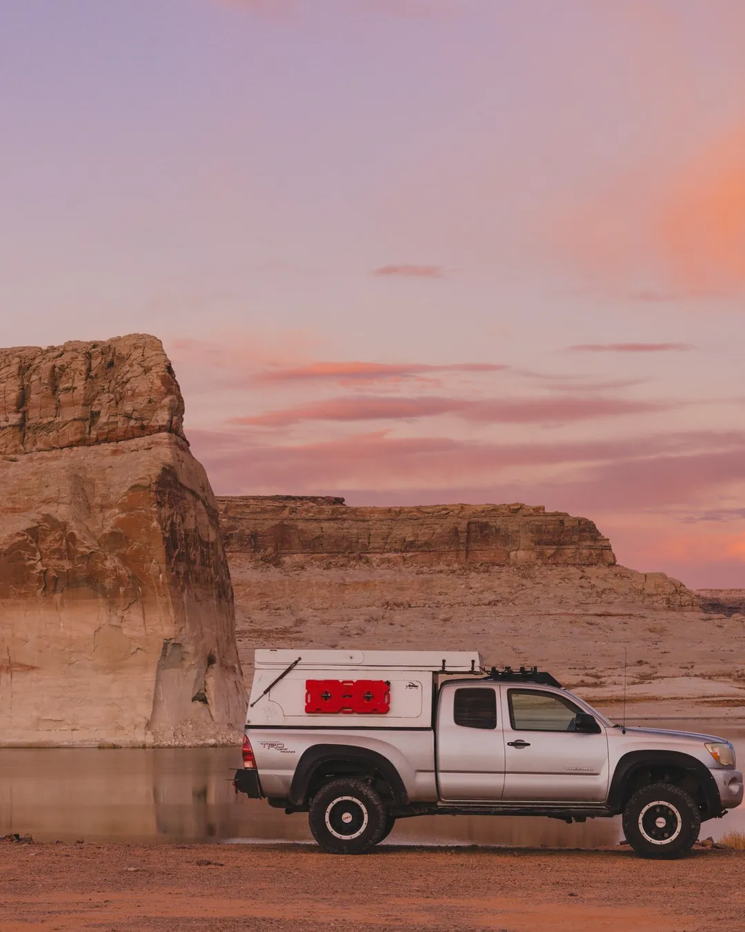 The $14 per night fee (per vehicle) includes access to an open, dispersed camping area where you can pick your own spot along the lake. The campground is located just off Highway 89, about 2 miles south of Big Water, Utah, and 12 miles north of Page, Arizona. After the entrance station, you’ll follow a network of dirt roads toward the water—be mindful, some areas contain deep sand, particularly the farther east you go. 4x4 is strongly recommended, especially if you’re planning to get close to the shoreline or venture beyond the harder-packed zones near the entrance. Many people do fine in 2WD if they stay cautious and don’t push too far, but getting stuck is a real risk.