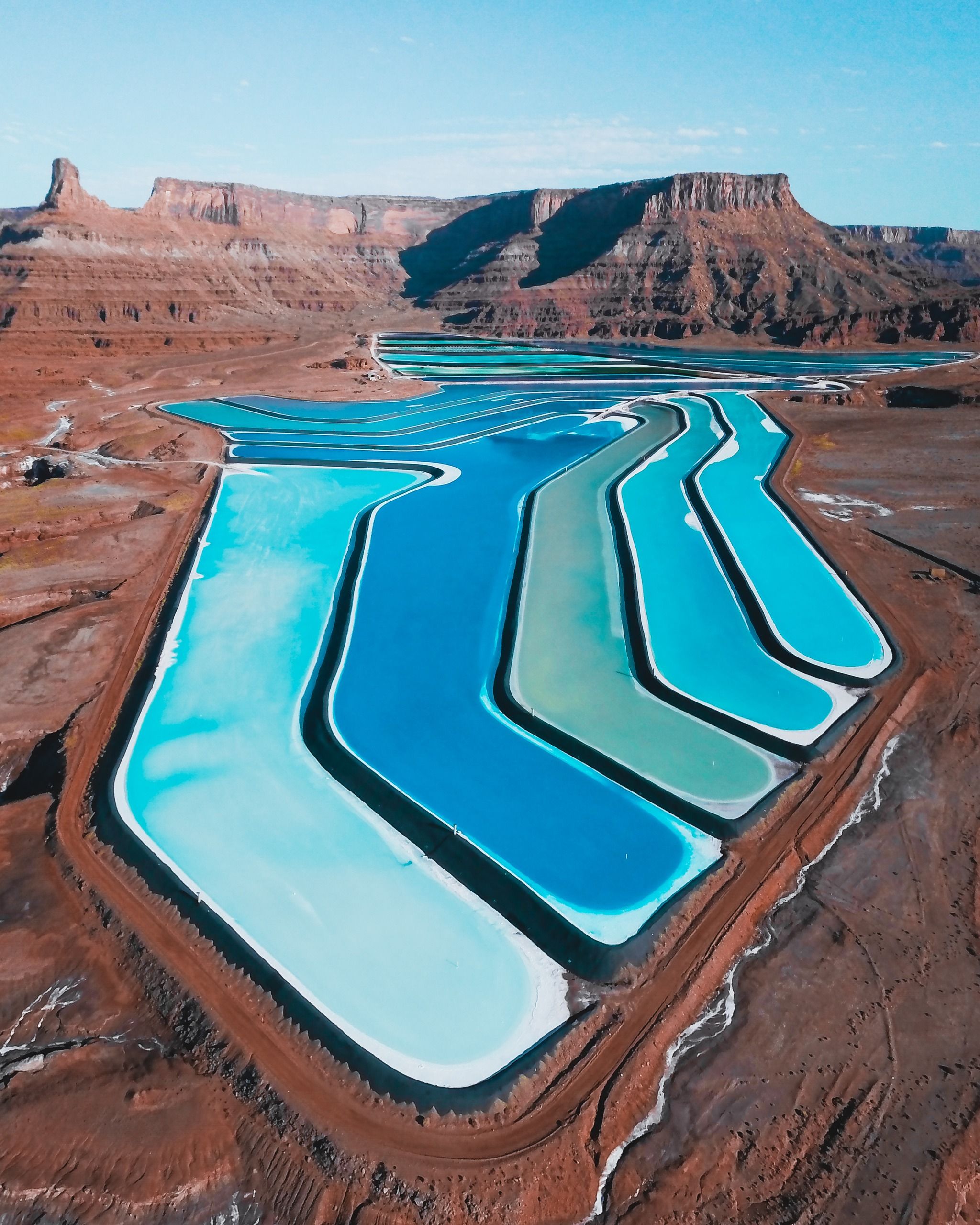 These ponds near Moab, Utah, are renowned for their striking turquoise-blue color, created by dye added to the brine to speed up evaporation in the potash harvesting process. Operated by Intrepid Potash, Inc., these industrial ponds are used to extract potassium-based fertilizer and are set against the stark beauty of the surrounding red rock desert. While the ponds themselves are on private property and swimming is strictly prohibited, they can be viewed from Potash Road (State Route 279), which offers several scenic pullouts for photos—just be sure to respect all boundaries.