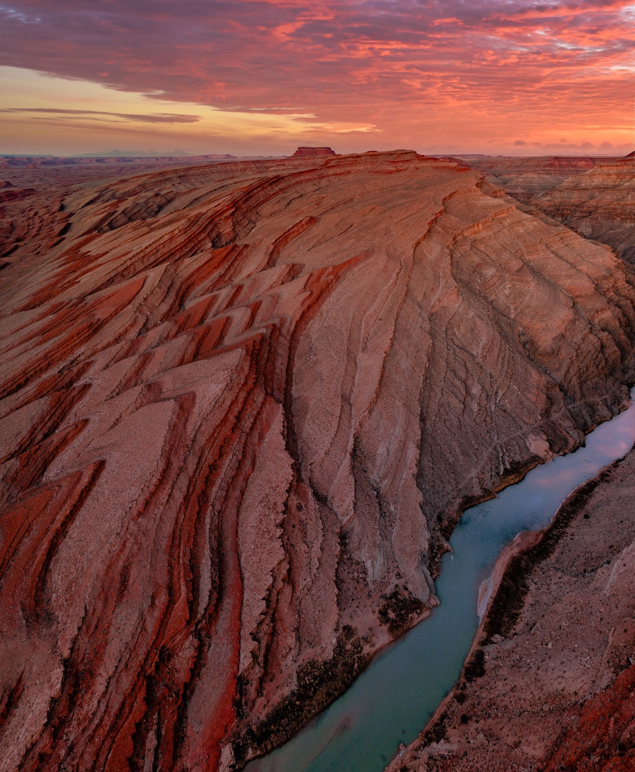 Raplee Ridge is a textbook example of a monocline—a landform created when otherwise horizontal layers of rock are sharply folded. The ridge was formed during the Laramide Orogeny, a major mountain-building period that shaped much of the American West over 50 million years ago. One side of the monocline features steep cliffs, while the other transitions more gently into valleys and plateaus.