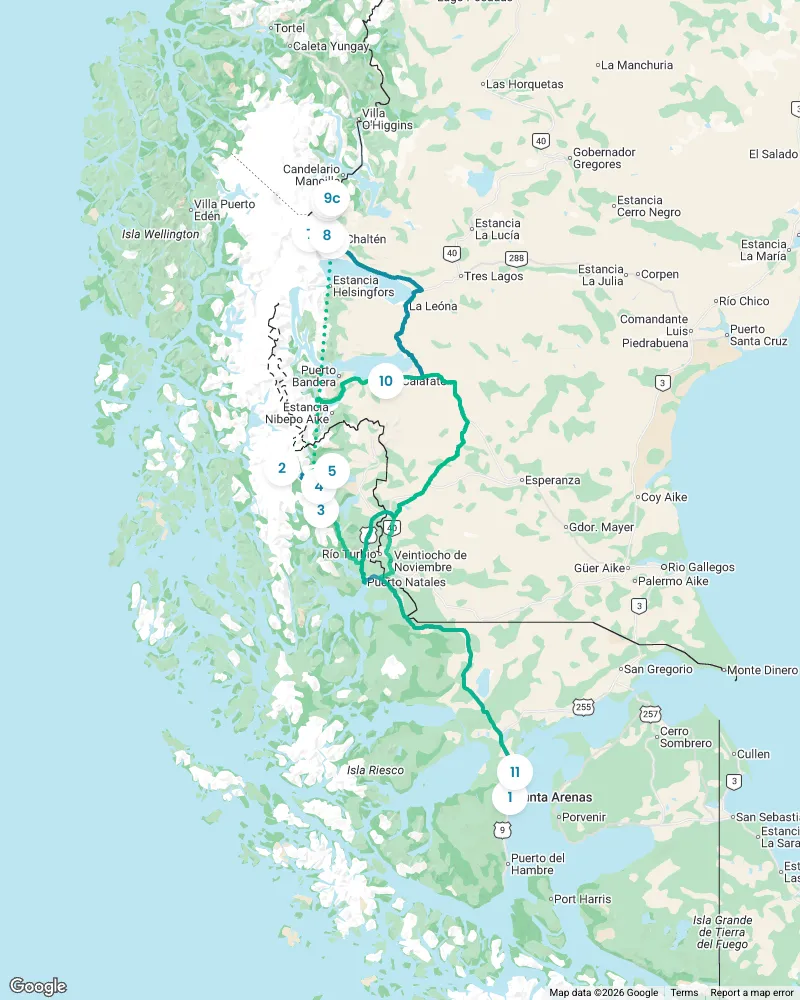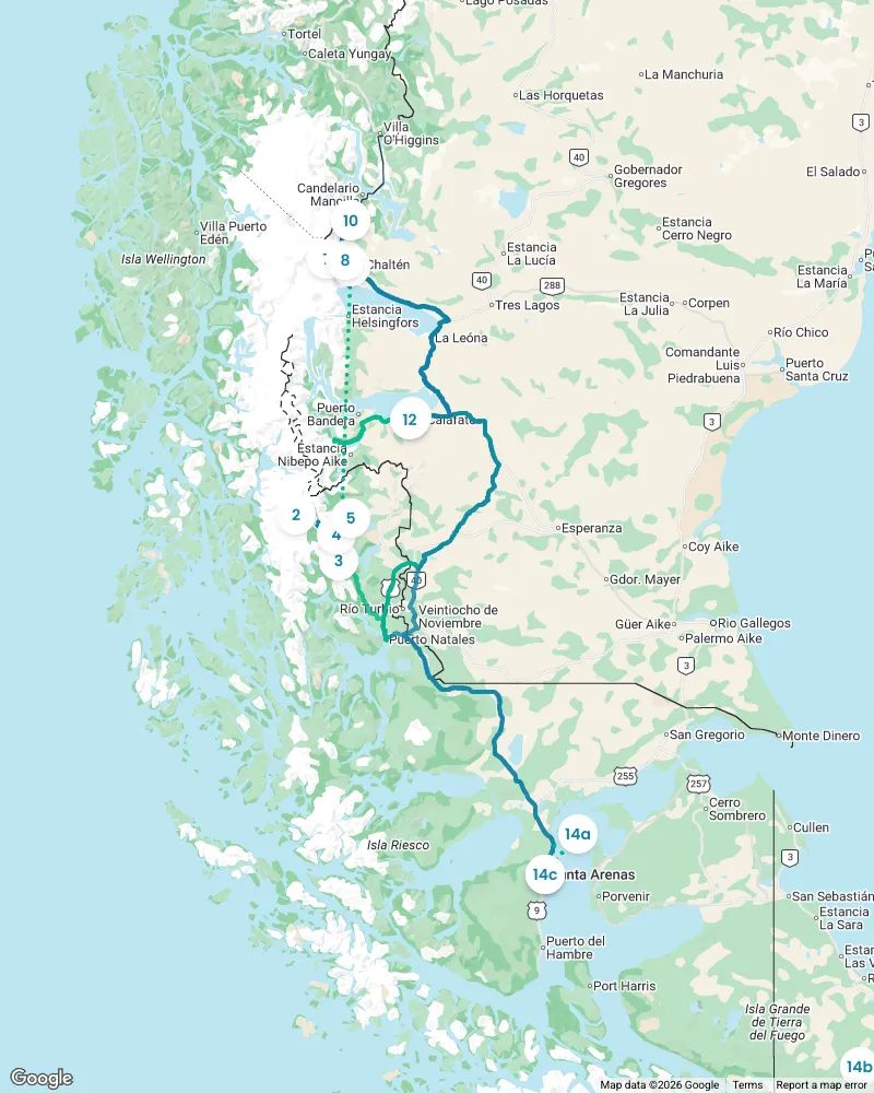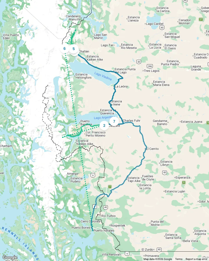 Choose from 4 detailed itineraries: -2 week Chilean and Argentinian Patagonia -10 Day condensed trip -7 day Chilean Side -7 day Argentinian Side