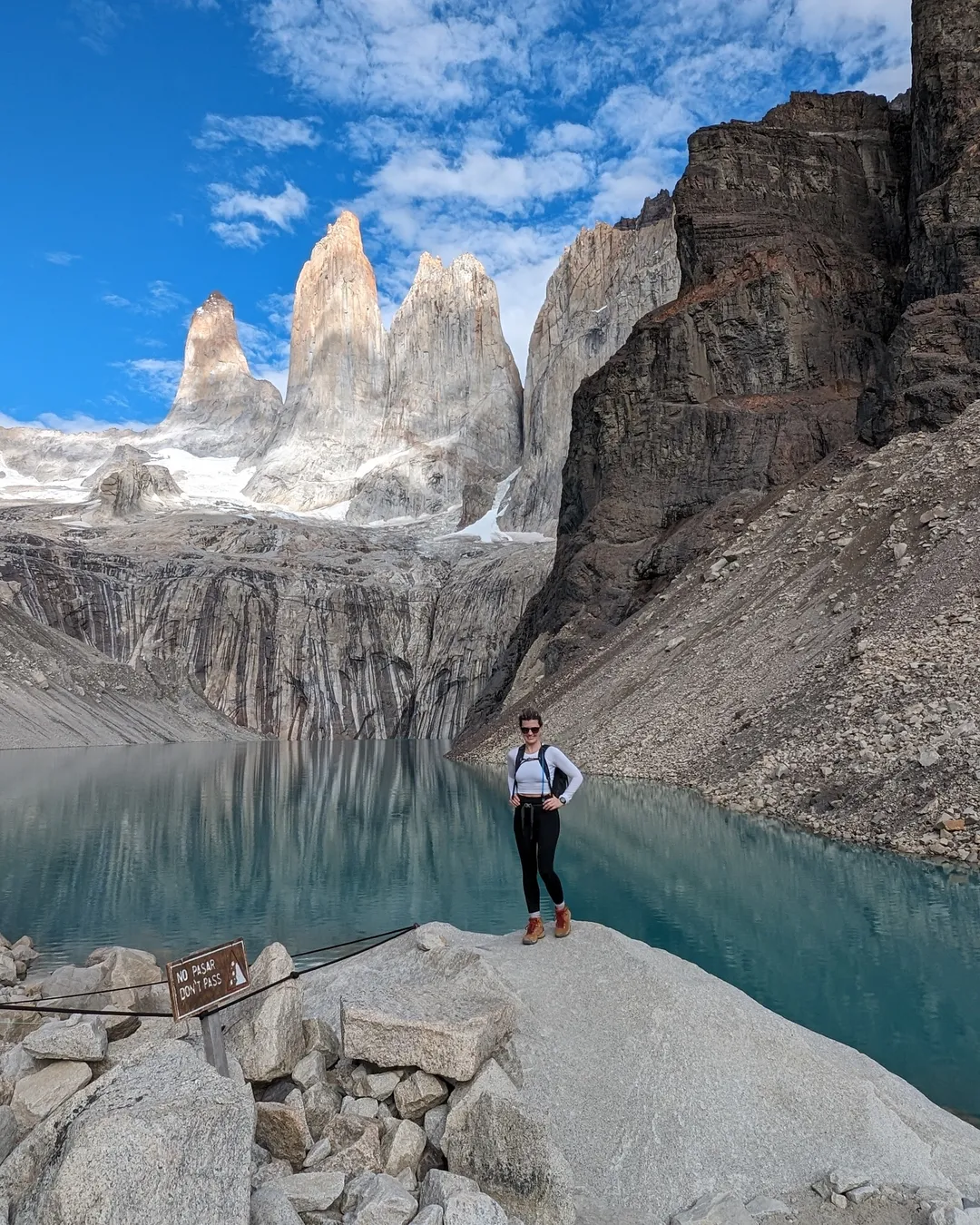 This is the hike everyone comes to Torres Del Paine for. Go early for this one as it does get busy. Many people camp half way up at Rifugio Chileno so that they can get there for sunrise, but we chose to do the whole thing as a day hike. Totally worth it! This viewpoint is also part of the popular W and O treks, but it is not necessary to do the treks in order to see this view.