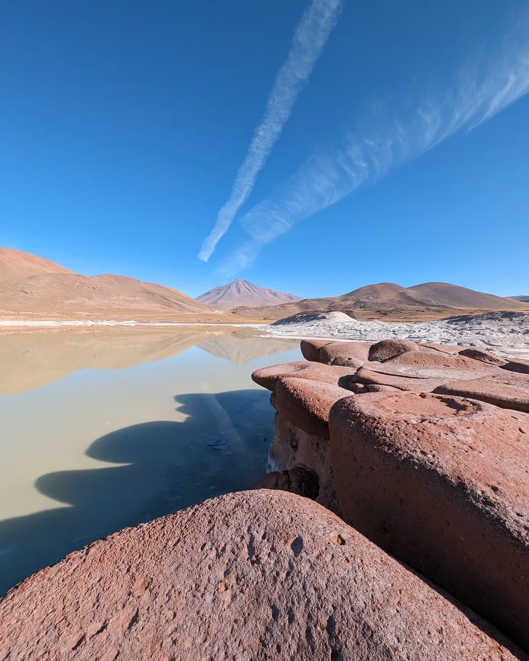 Piedras Rojas is a stunning natural wonder located in the breathtaking landscapes of Patagonia, Argentina. Nestled at an elevation that offers spectacular views, this site is famous for its striking red rocks that contrast beautifully with the surrounding turquoise waters and the rugged volcanoes in the background. It took us about 3 hours from San Pedro in our rental truck. Happy to report the roads are good and you don't need a 4*4. There are plenty of high altitude lakes and beautiful salt lagoons on the way.