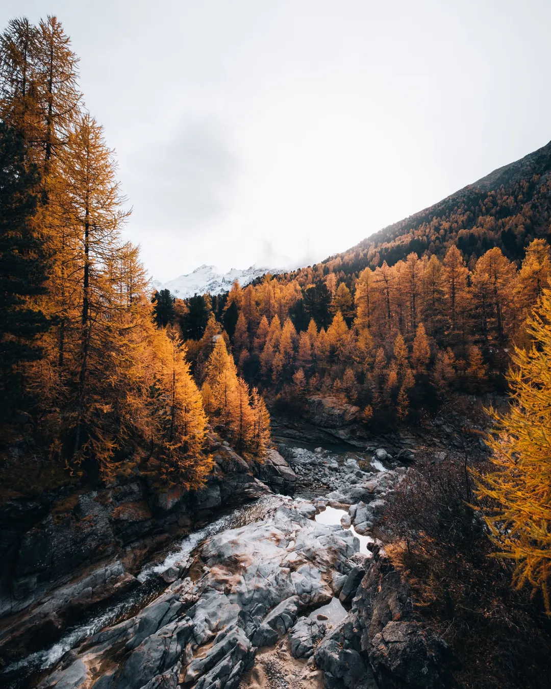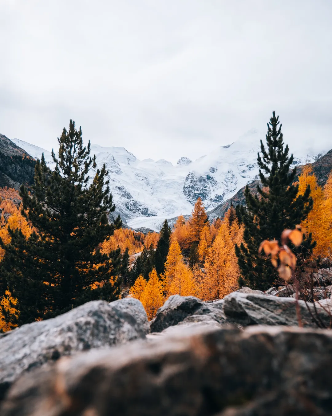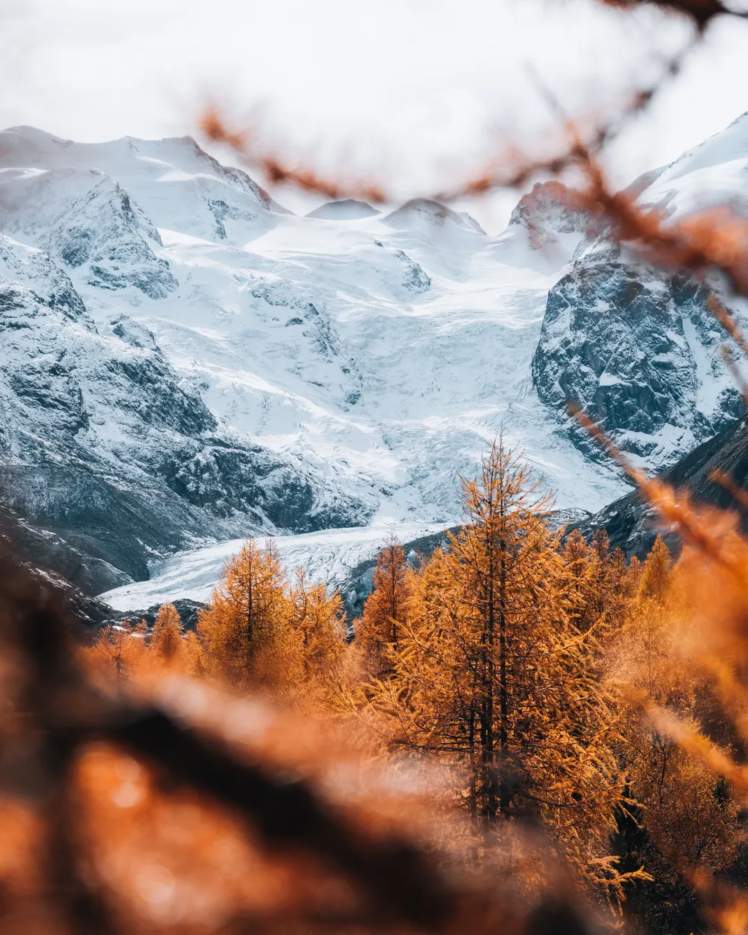 For photographers, this area is a true gem. Early morning light beautifully illuminates the peaks and glacier, while mid-morning brings striking contrasts and textures on the ice. In summer, deep blue tones shimmer through the glacier, and alpine flowers along the path add color to your compositions. In autumn, golden larches stand out against the icy landscape, and in winter, the scene turns into a minimalist wonderland — perfect for moody black-and-white shots.