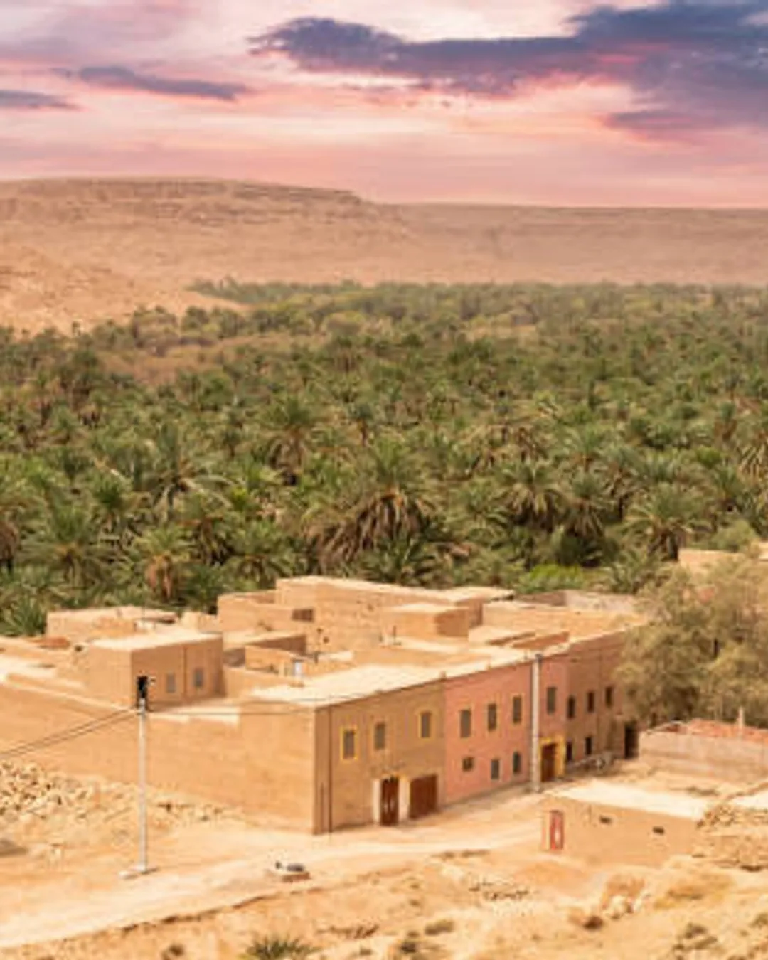 Kasbah-style lodges near palm groves