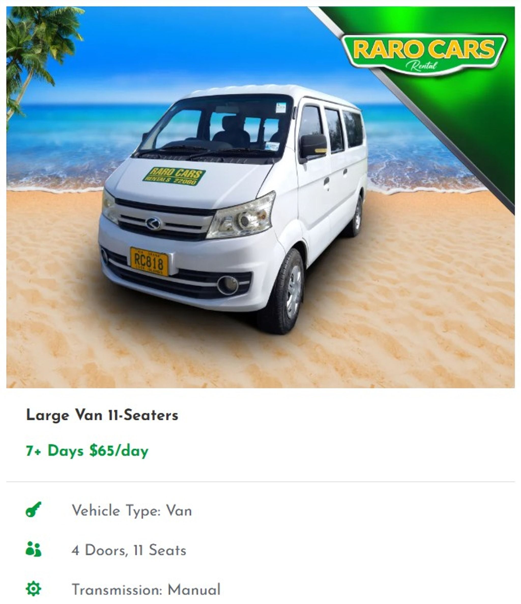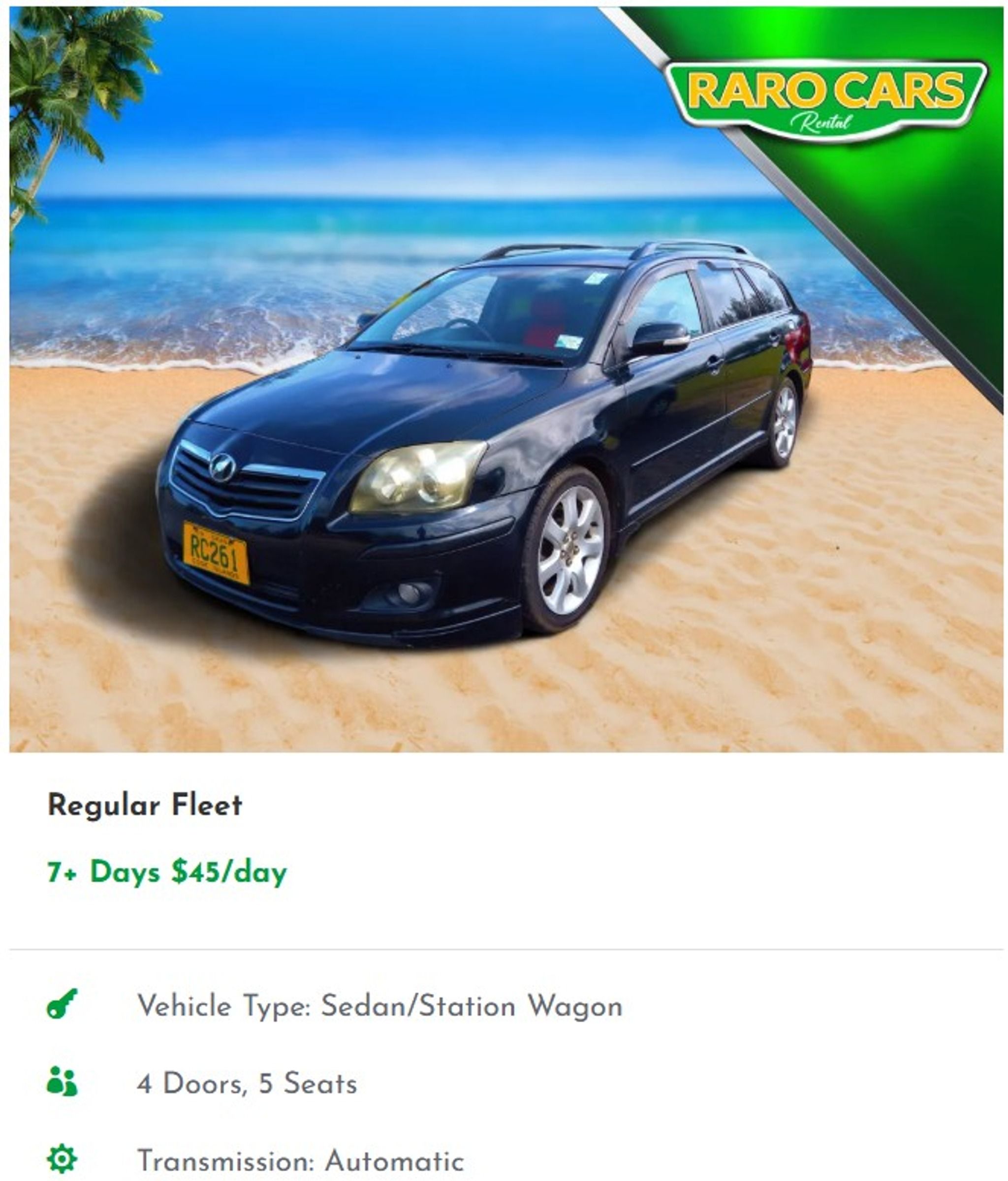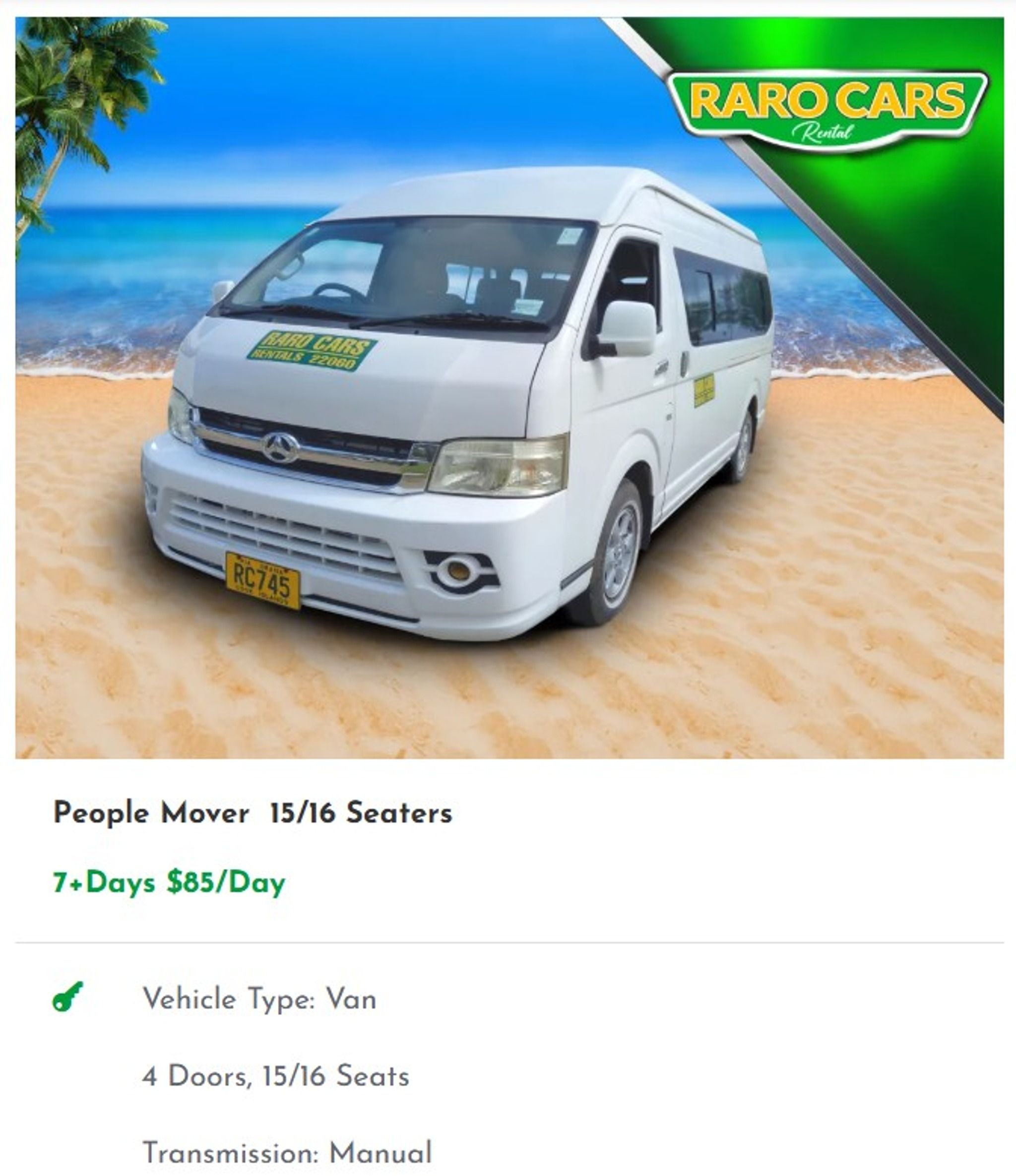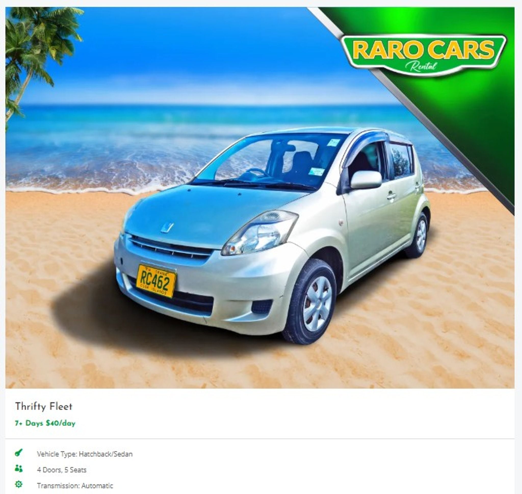 RaroCars is a popular car rental company in Rarotonga, offering a range of vehicles from thrifty hatchbacks to spacious sedans and station wagons. With competitive rates and a 10% discount guarantee, they aim to provide the cheapest rental options on the island. Their friendly staff ensures a stress-free experience, with 24/7 roadside assistance and simple airport service. Whether you need a car for a day or a month, RaroCars has you covered with quality rentals and excellent customer service.