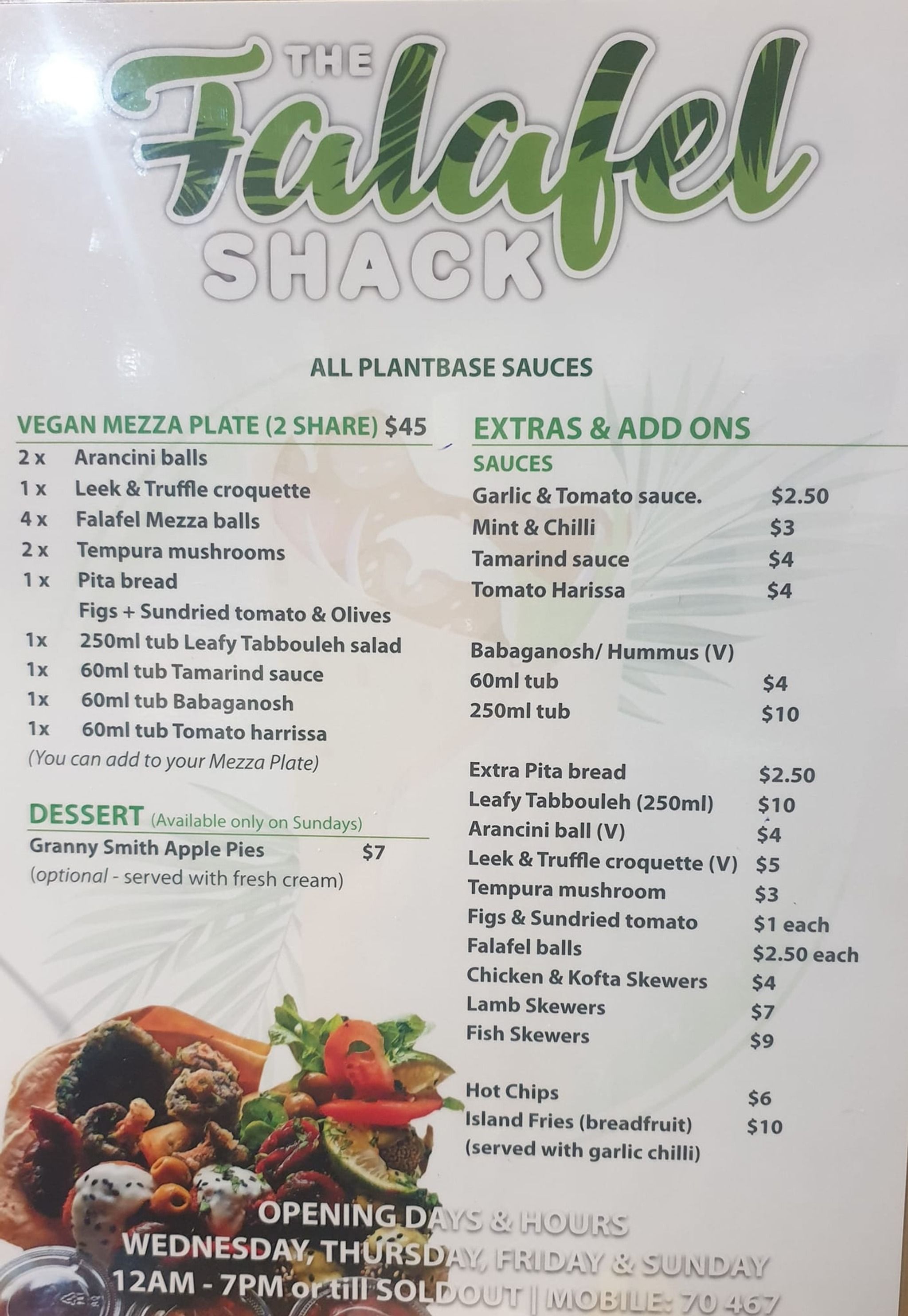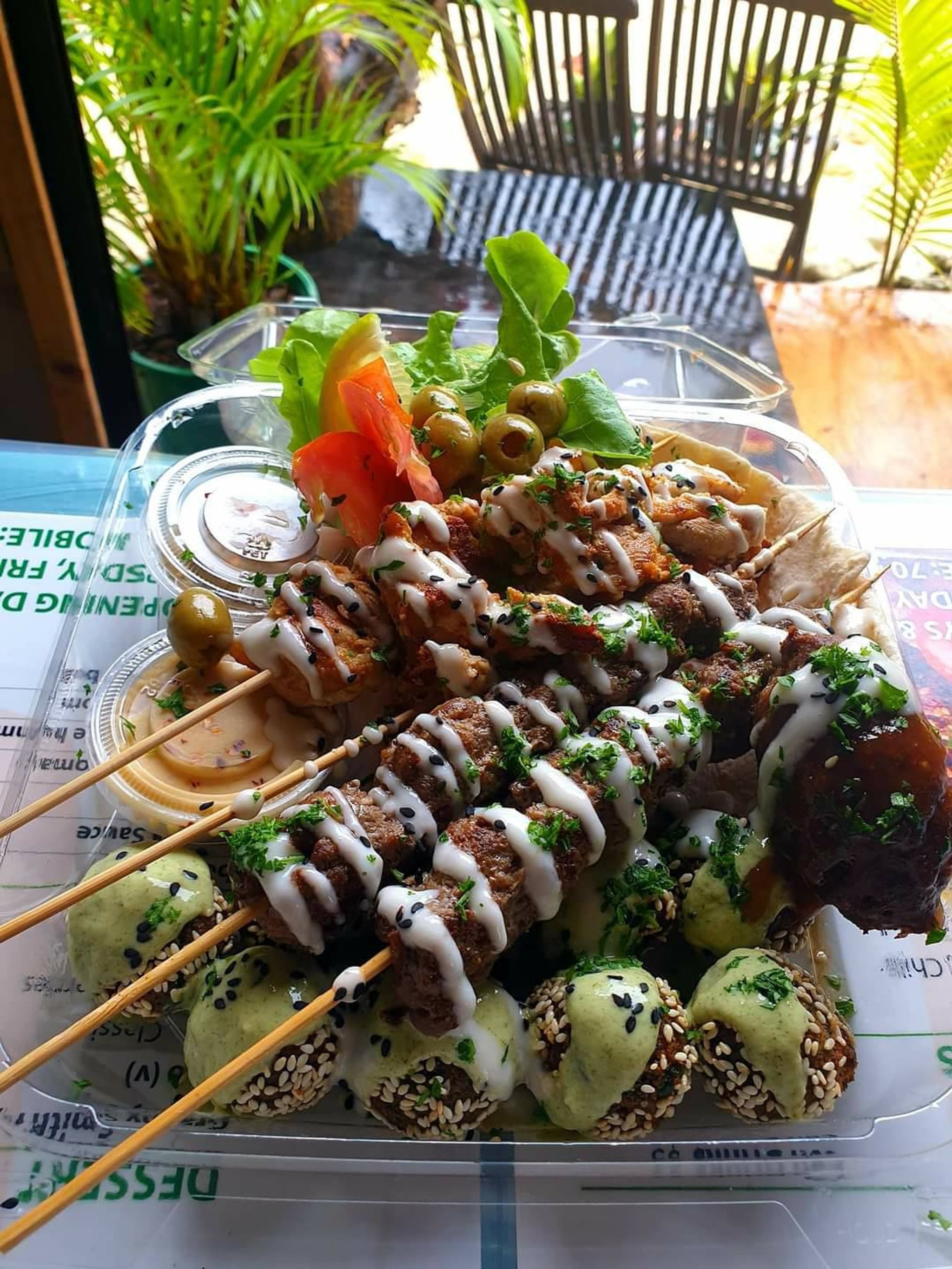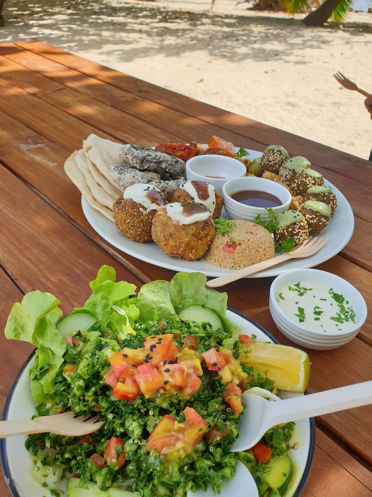 Authentic Middle Eastern flavors with a local twist. - with house made, plant-based sauces and fresh local ingredients, sided with a gorgeous quiet beach front location lined with coconut tree's - this is a place not to miss!
