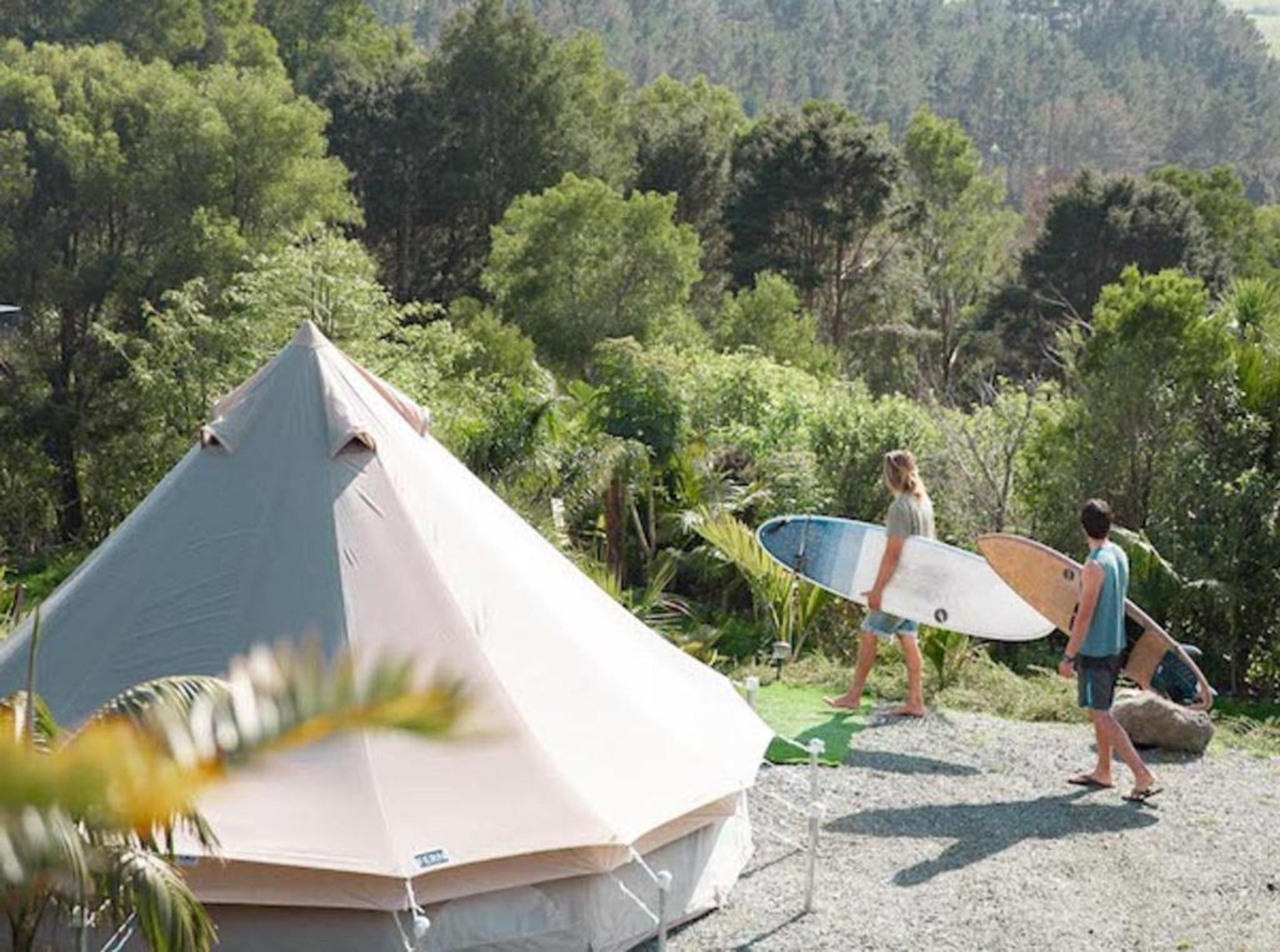They're Located just an hour from Auckland, guests can enjoy easy access to the North Island's best surf breaks and beaches. The modern pods and teepees are designed with attention to detail and a personal touch, providing a comfortable stay for couples, families, or solo travelers. With daily surf lessons, paddle boarding, and kayaking available, it's the perfect getaway for those looking to relax and reconnect with nature.