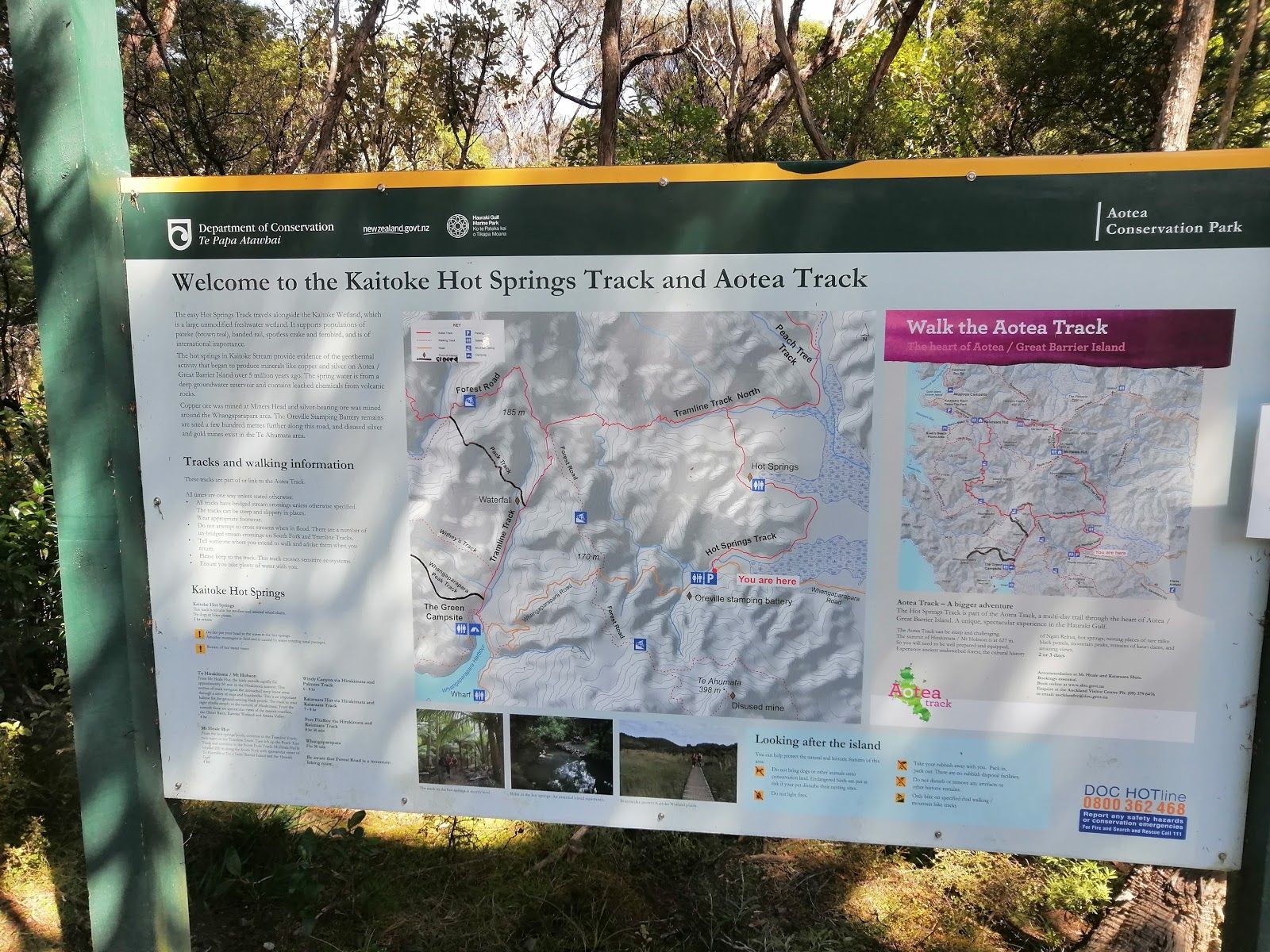 🚶♀️ Start at Kaitoke Hot Springs Track trailhead, located off Whangaparapara Road. It’s well signposted and has a small parking area nearby.