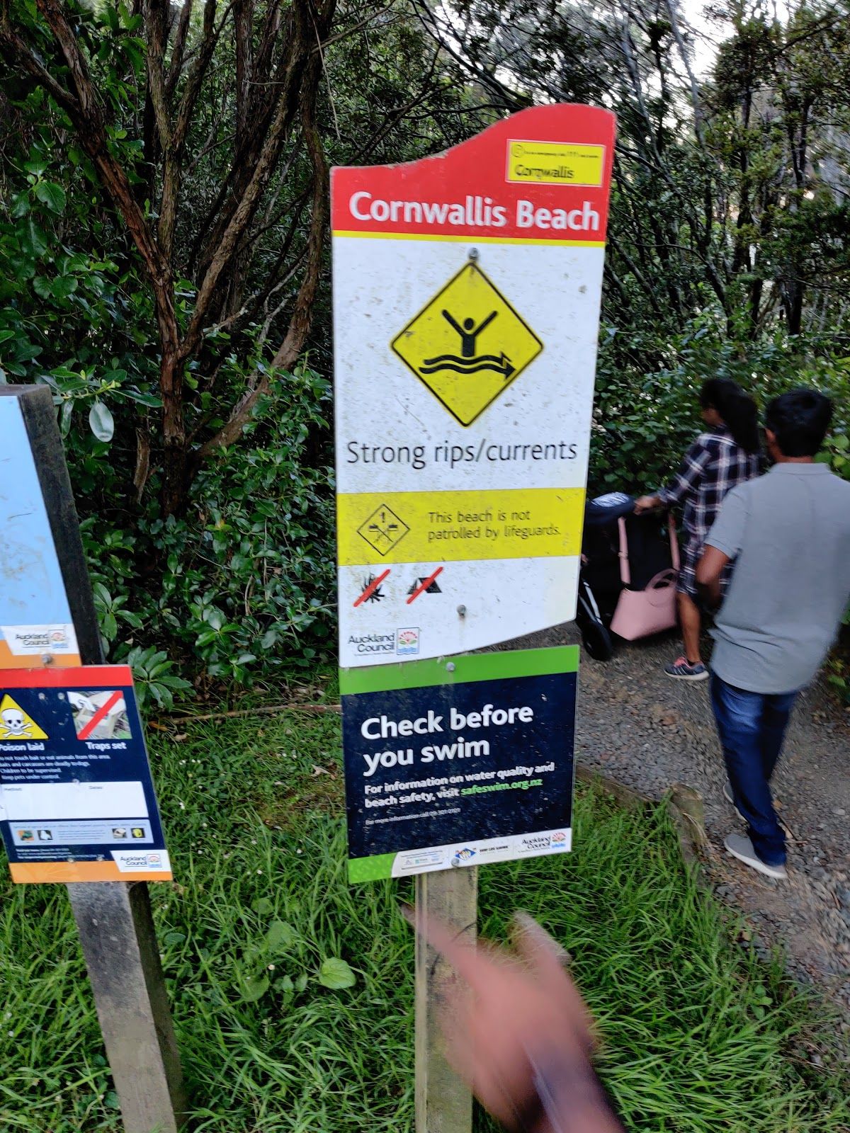 Part of the Waitākere Ranges Regional Park, Cornwallis is a popular, safe spot for family picnics and swimming. Beautiful beach 🌊, big park 🌳, and a long stretch of sand – plenty of space for everyone!