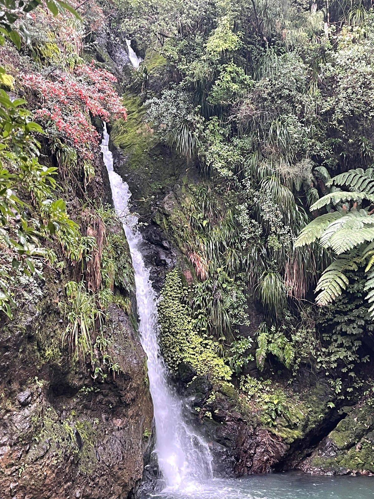 Tucked in the Waitākere Ranges, Karamatura Falls walk overall is a slow incline with steps, approx. 30-45mins to falls. Multiple clean swim holes-bring togs! A few smaller waterfalls too before the main fall.
