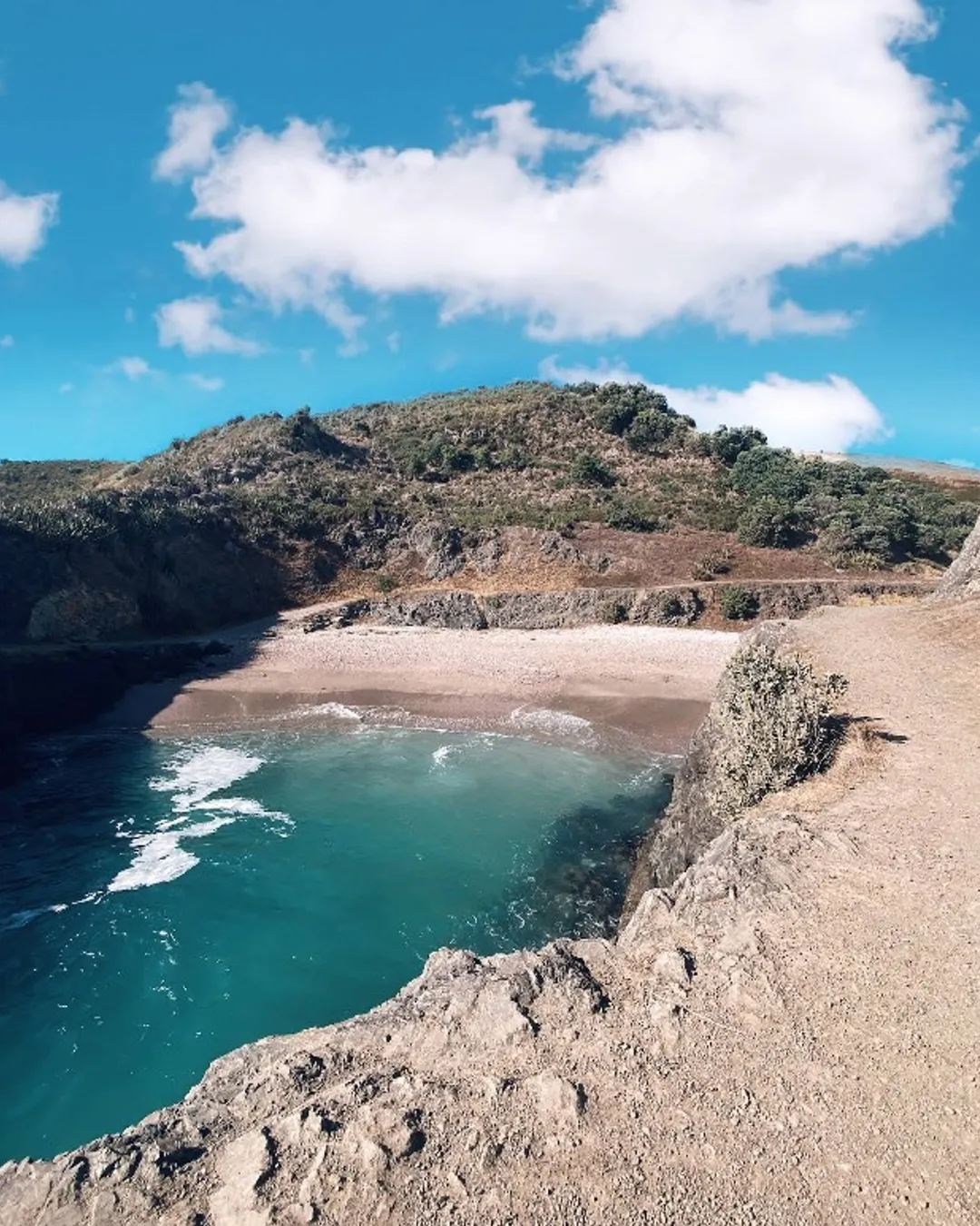 Epic beach / rock cut out out to the right. Cliff jumping (at the right tide) and a generally awesome locals beach spot.