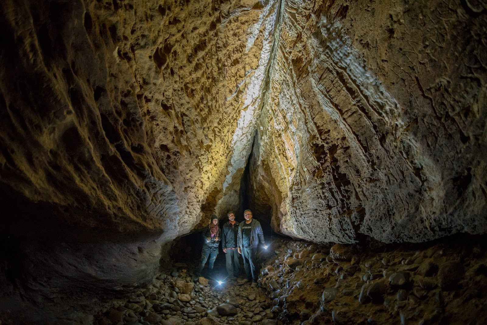 Do not enter the caves if rain is forecast, currently raining, or has rained in the past 24 hours, as the system is prone to flash flooding. Essential gear includes two torches per person (headlamp and handheld), spare batteries, a helmet, warm non-cotton clothing, sturdy footwear, and a first aid kit. Mobile reception is unavailable inside; always inform someone of your plans before entering.