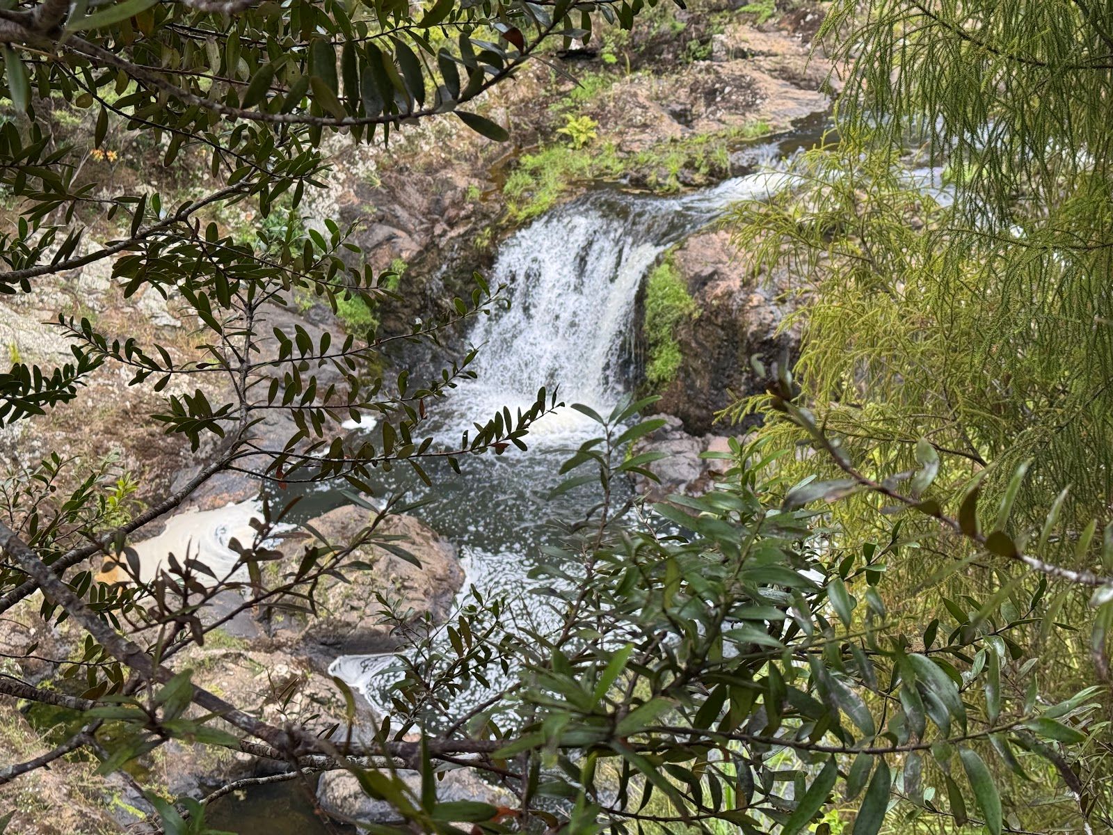 'You can get to the bottom of the waterfall. For this you need to be extremely fit and stupidly determined. Follow the loop trail. The descent path starts just behind that tree with the yellow tape to the right. It's very steep and even has the abseil rope down at the finish section of the slope. Then make your way through the bush, hop along the river rocks and finally enjoy the splash. It's worth it! The place is wild. Not a soul so it's all yours to have fun.'