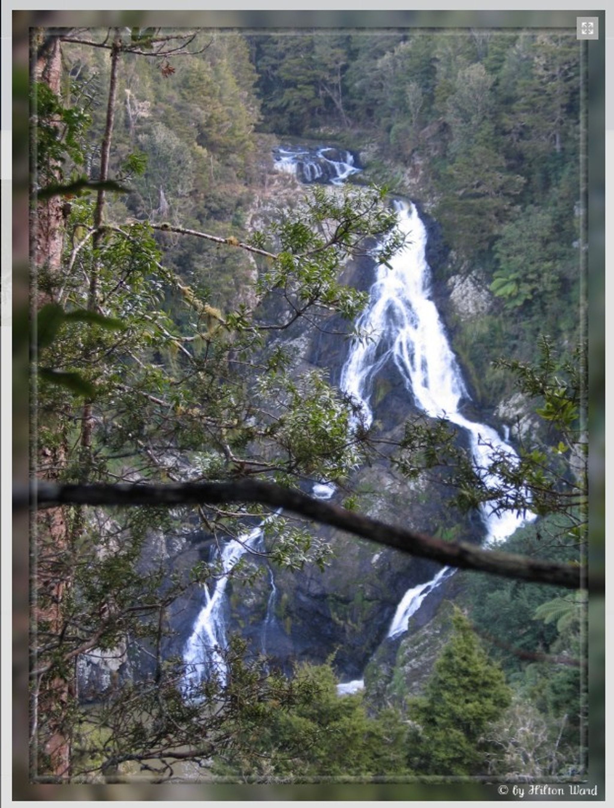 Note: Unfortunately, a side track to the lower viewing platform has been closed permanently due to Kauri dieback, so the lower waterfall can't be seen anymore. (photo of that view is credited to Hilton Ward via waterfalls.co.nz)