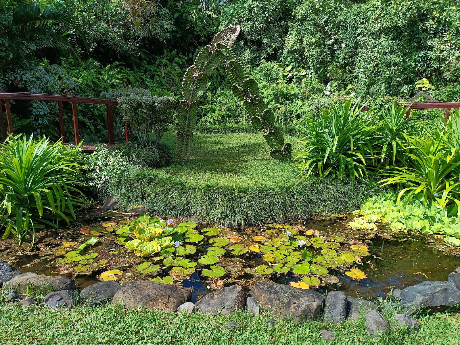 Explore this lush, tropical paradise—seven acres of vibrant greenery, lily ponds, and winding paths.