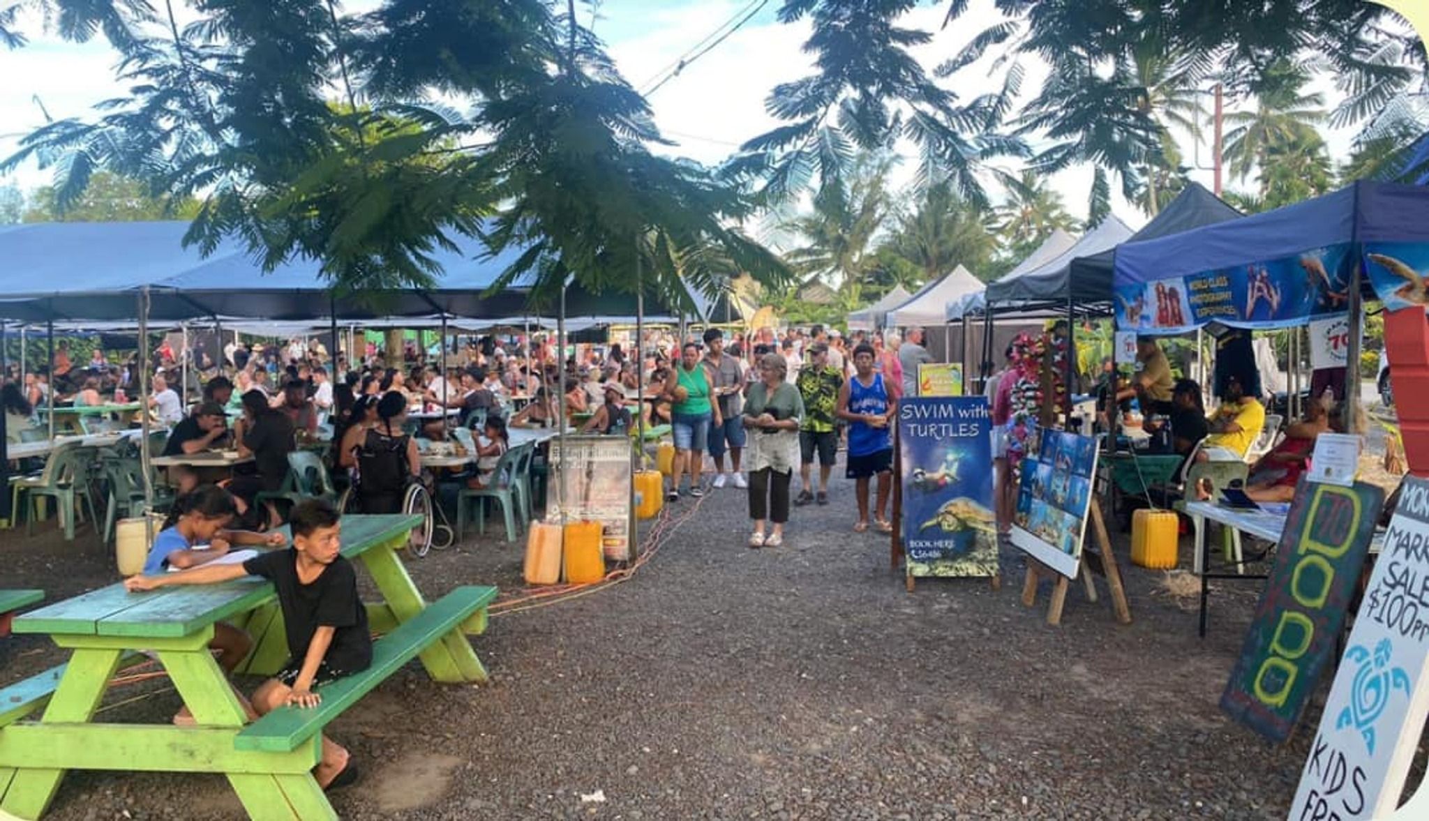 Vibrant evening market in paradise