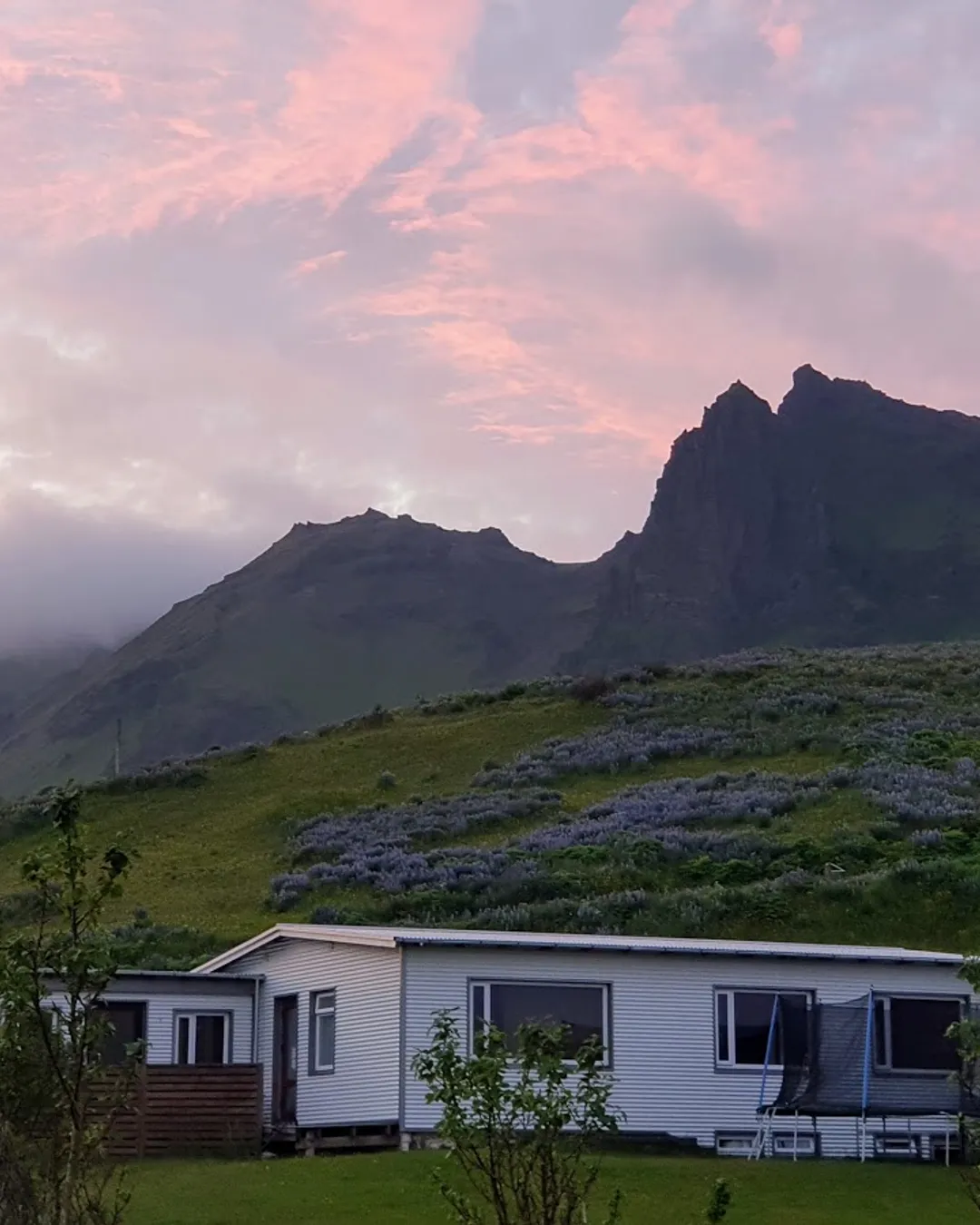 Scenic black sand beach village