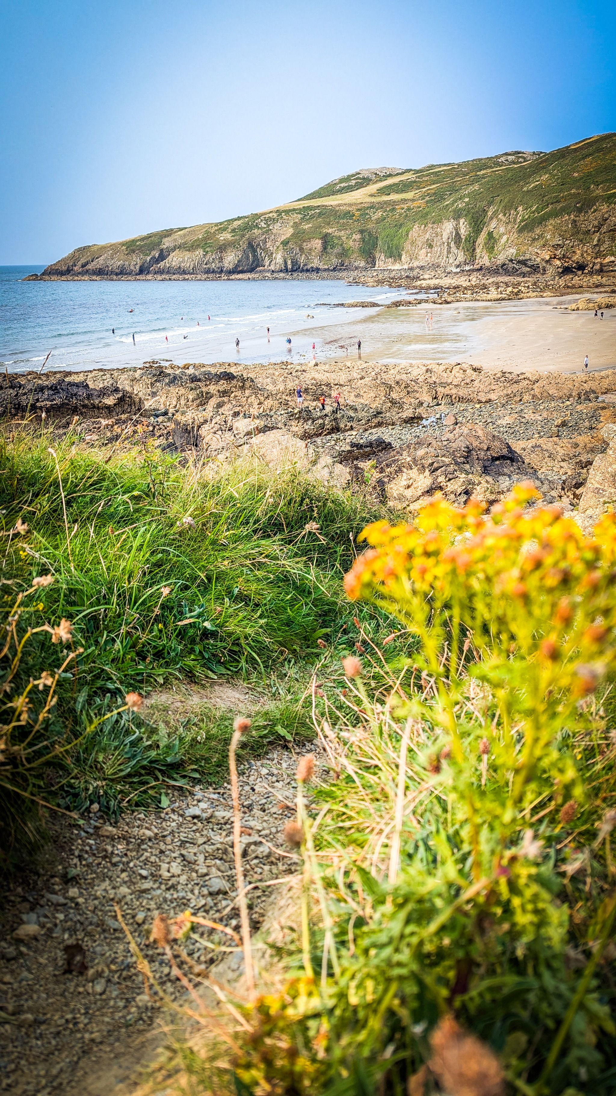 Porth Swtan also known as chruch Bay is one of our favourite beaches on Anglesey becuase it has a bit of everything - its a huge snady cove perfect for sandcastles and playing on the beach, the water here is crystal clear with shallow access and wefound the most amount of crabs we have ever found in the rock pools here.