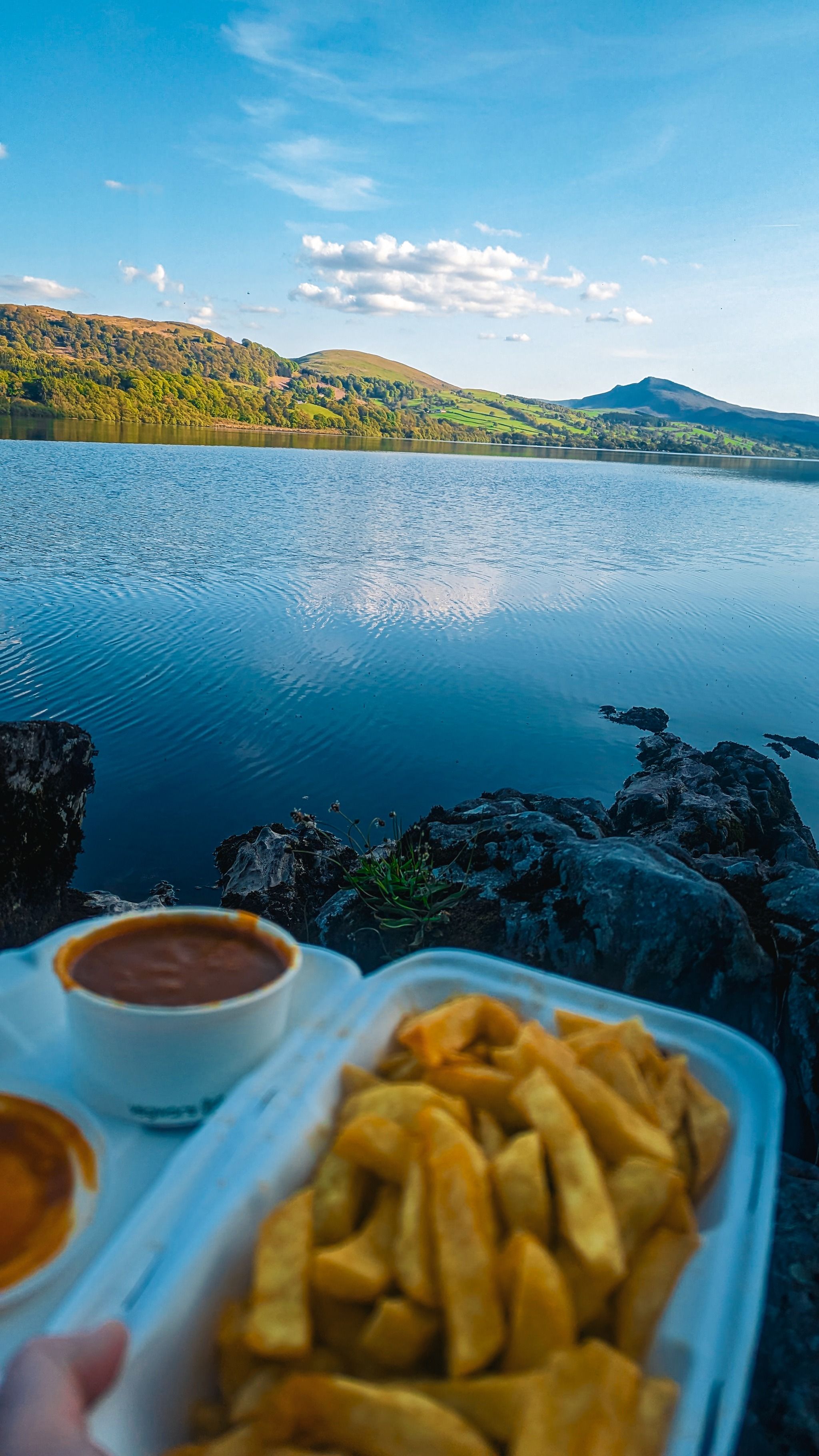 Lake with mountain backdrop in Bala