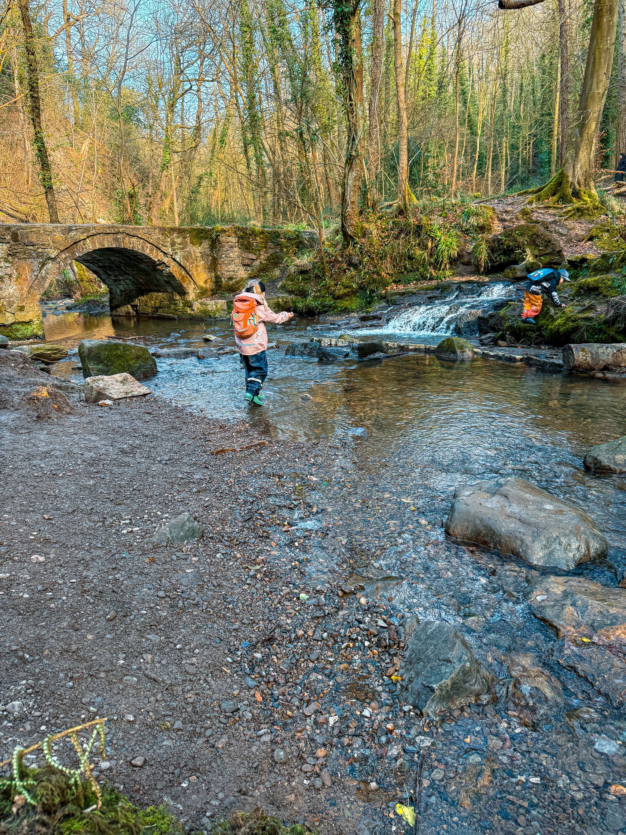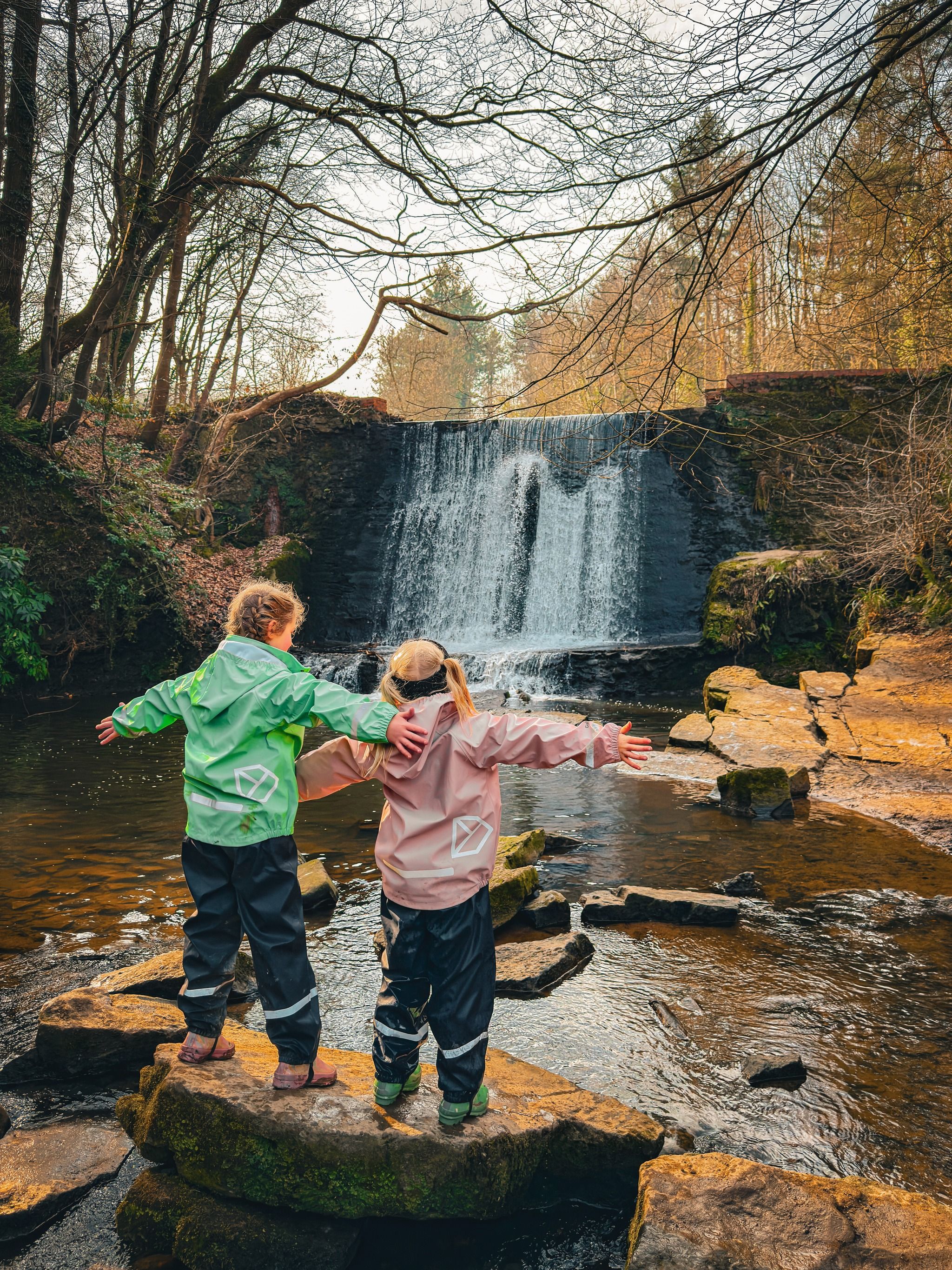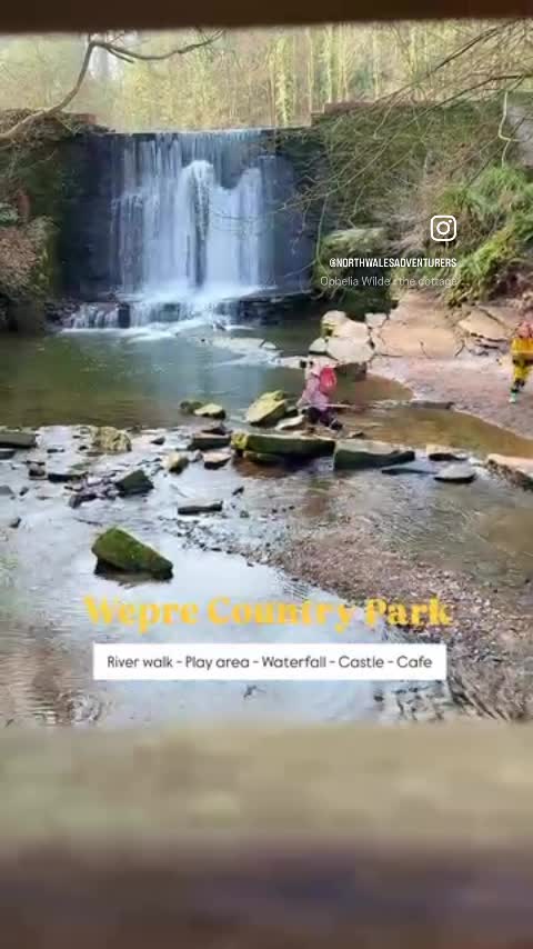 Country park with a waterfall, castle and play park