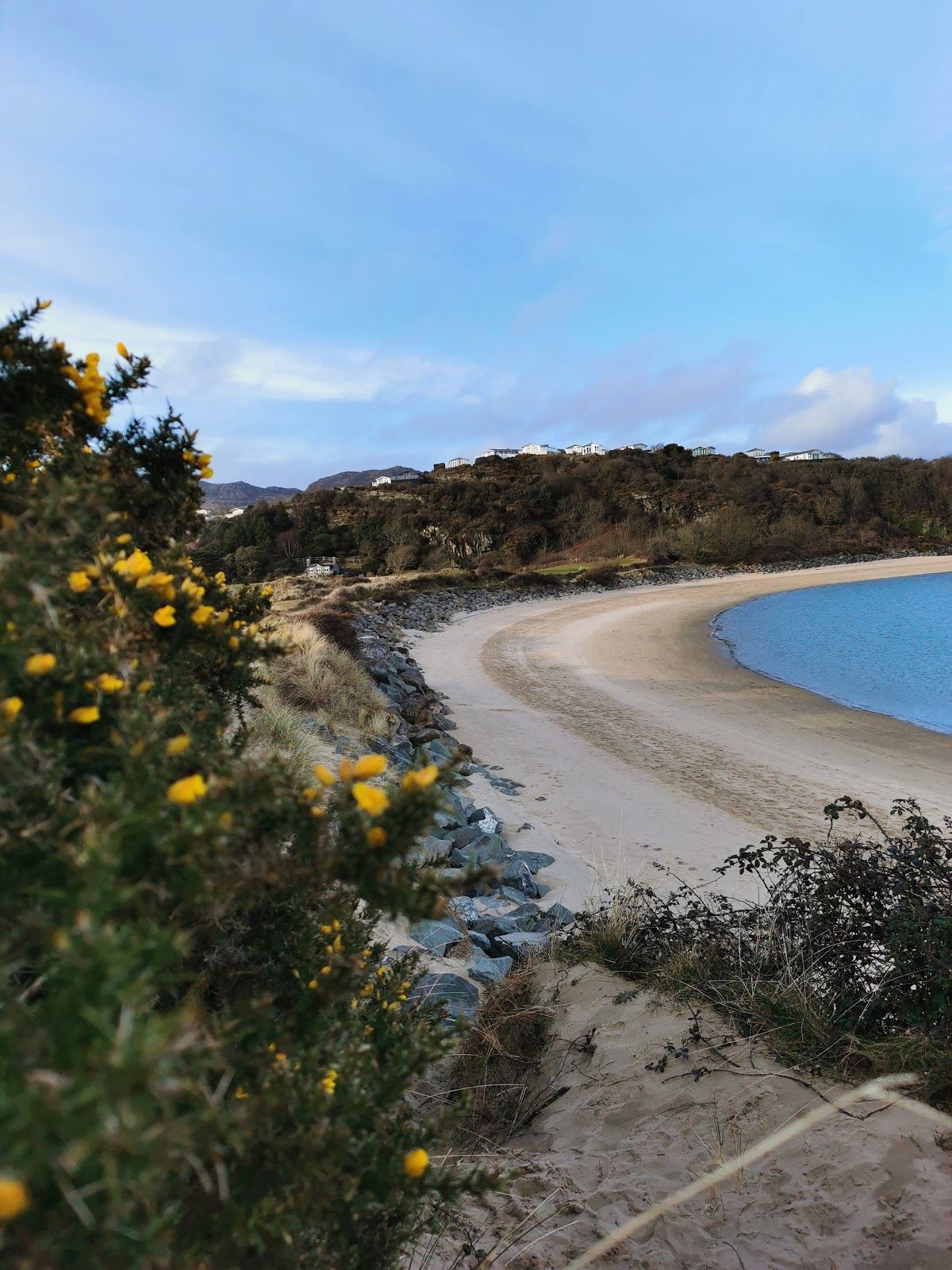 Seaside village with sandy beach