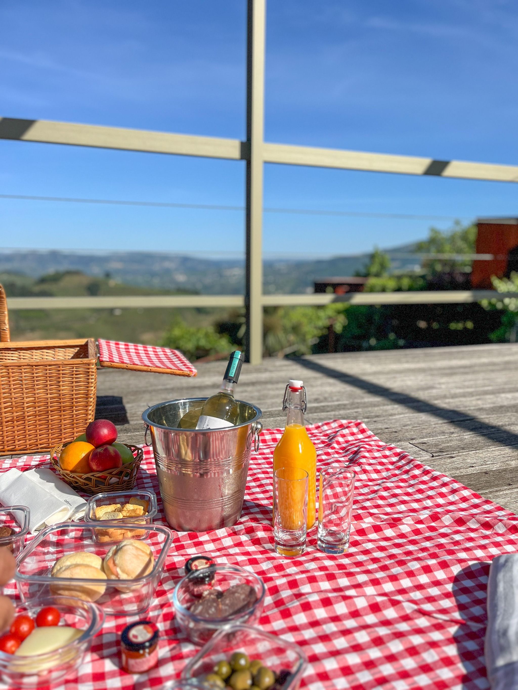 O café da manhã pode ser desfrutado na casa, com uma charmosa cesta recheada de produtos locais (foi a nossa escolha!). Para um toque ainda mais especial, é possível organizar um delicioso piquenique ao pôr do sol.