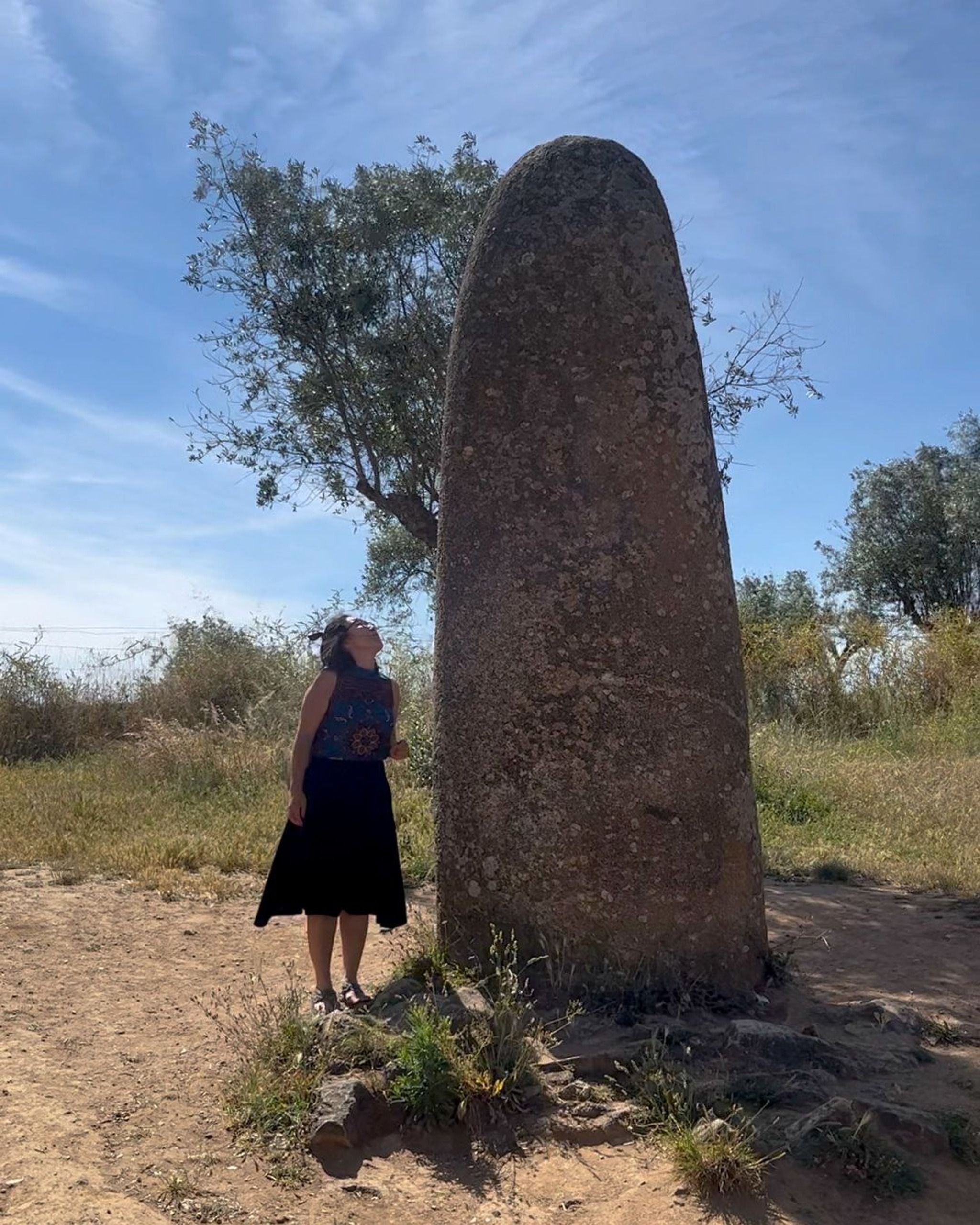 Se quiser, dá pra fazer um bate-volta pro menir, que esta a alguns quilômetros do Cromeleque. Esse menir tem uns 4 metros de altura e ainda tá lá, firme e forte, desde os tempos do Neolítico até o Calcolítico.