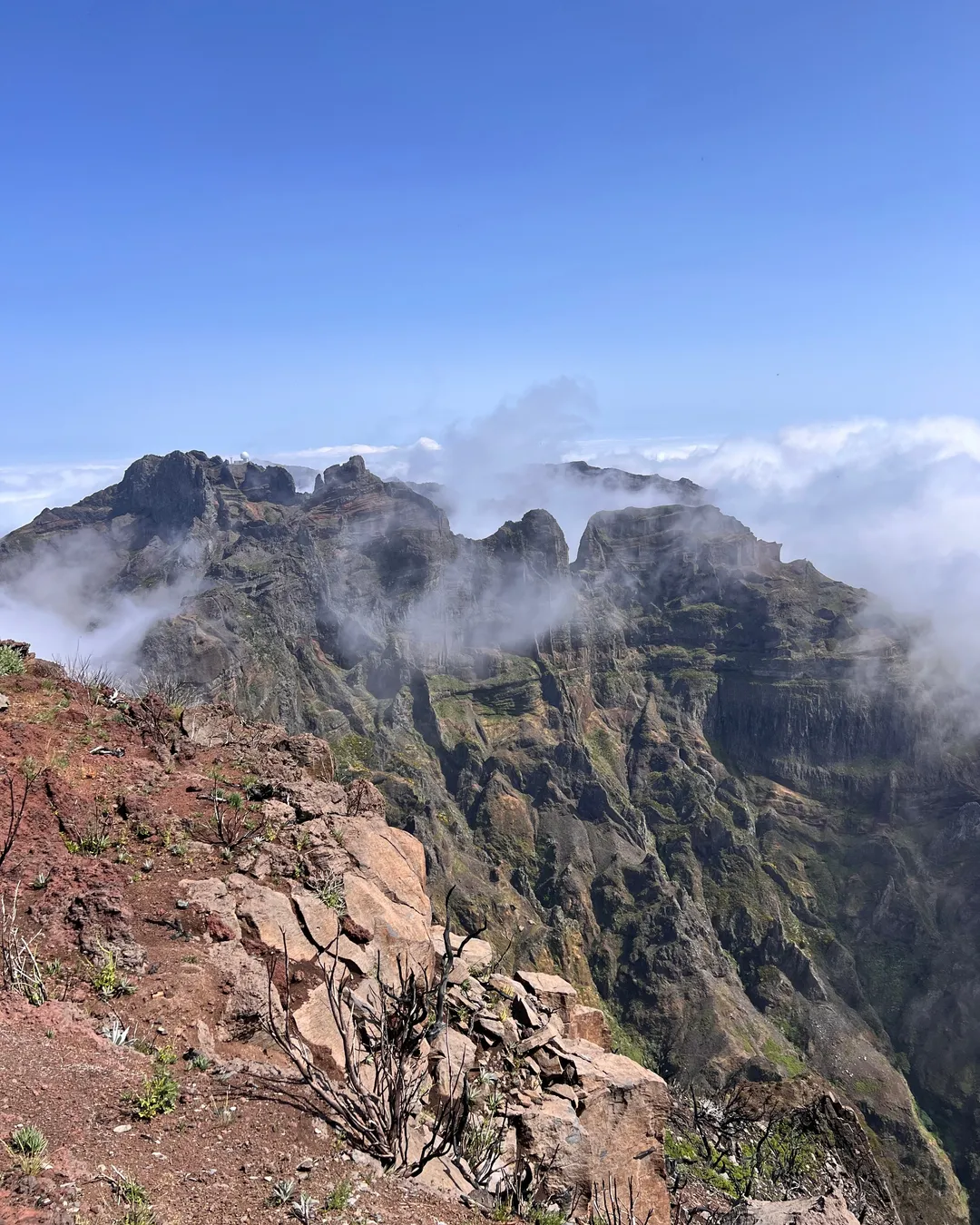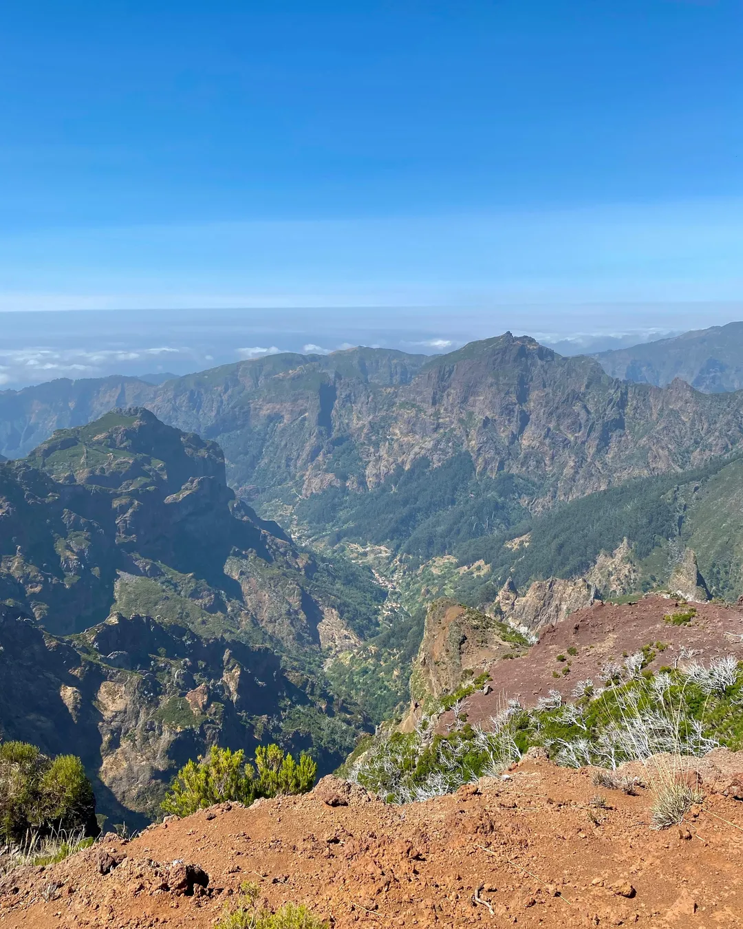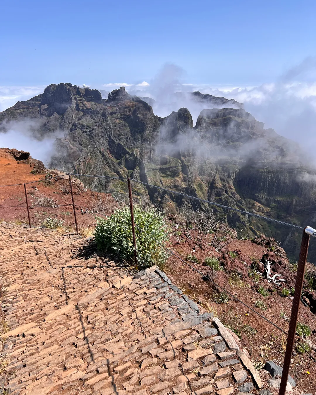 Cestou k vrcholu uvidíte krásne panoramatické výhľady na hory, často nad oblakmi. Podobne ako na Pico do Arieiro, aj tu sú vyhliadkové platformy, z ktorých si môžete vychutnať scenériu a fotiť.