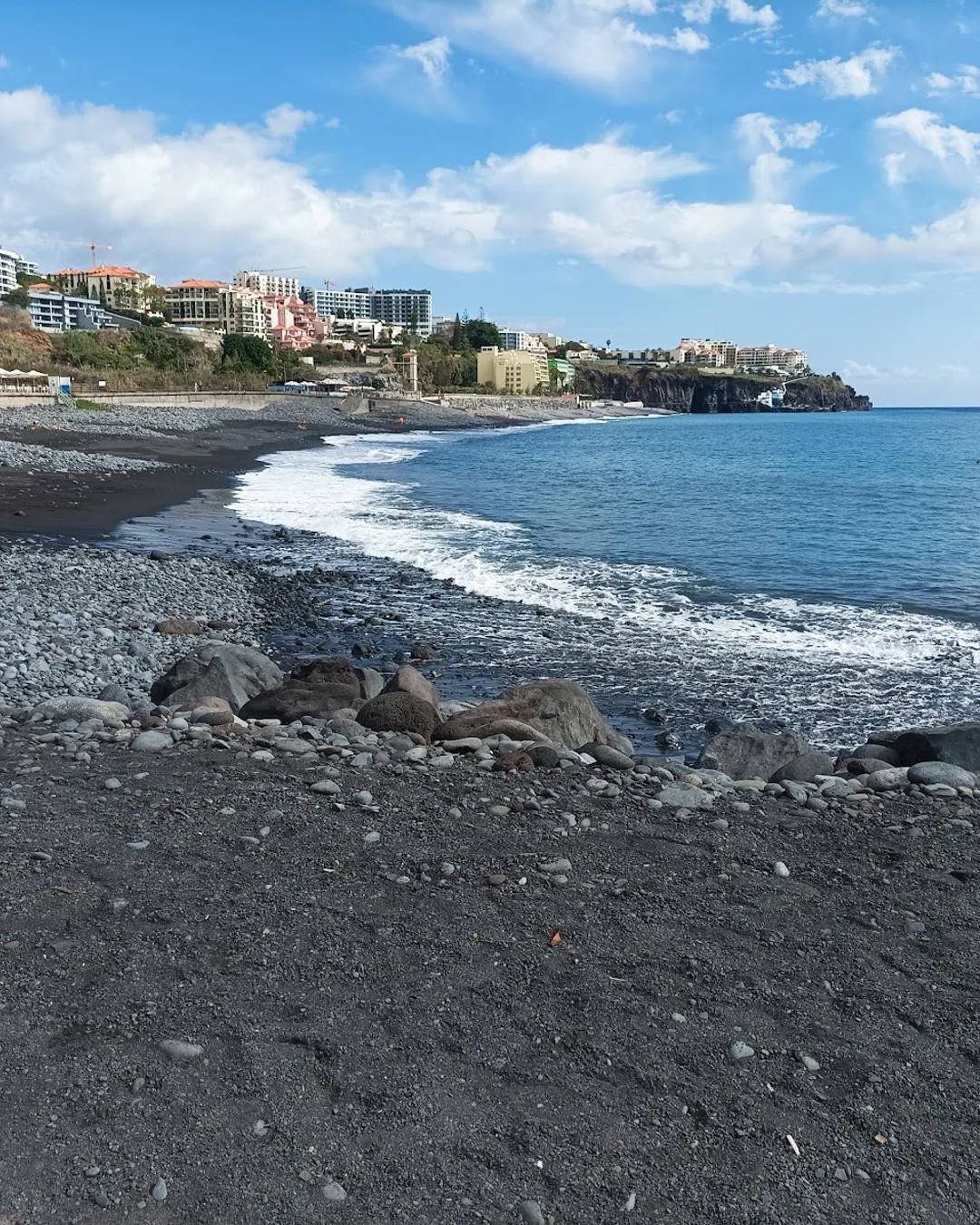 Veľká mestská pláž s čiernym pieskom