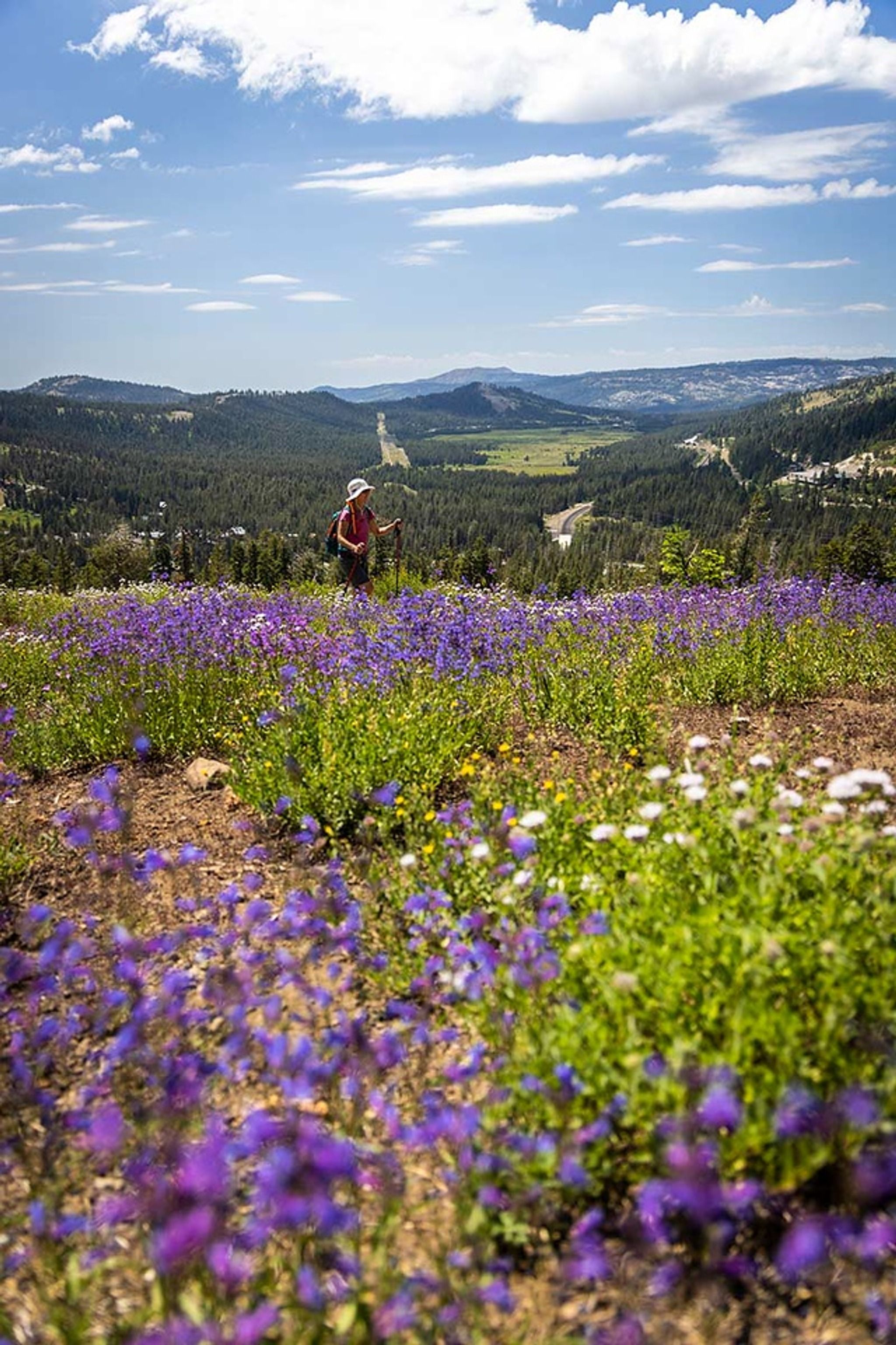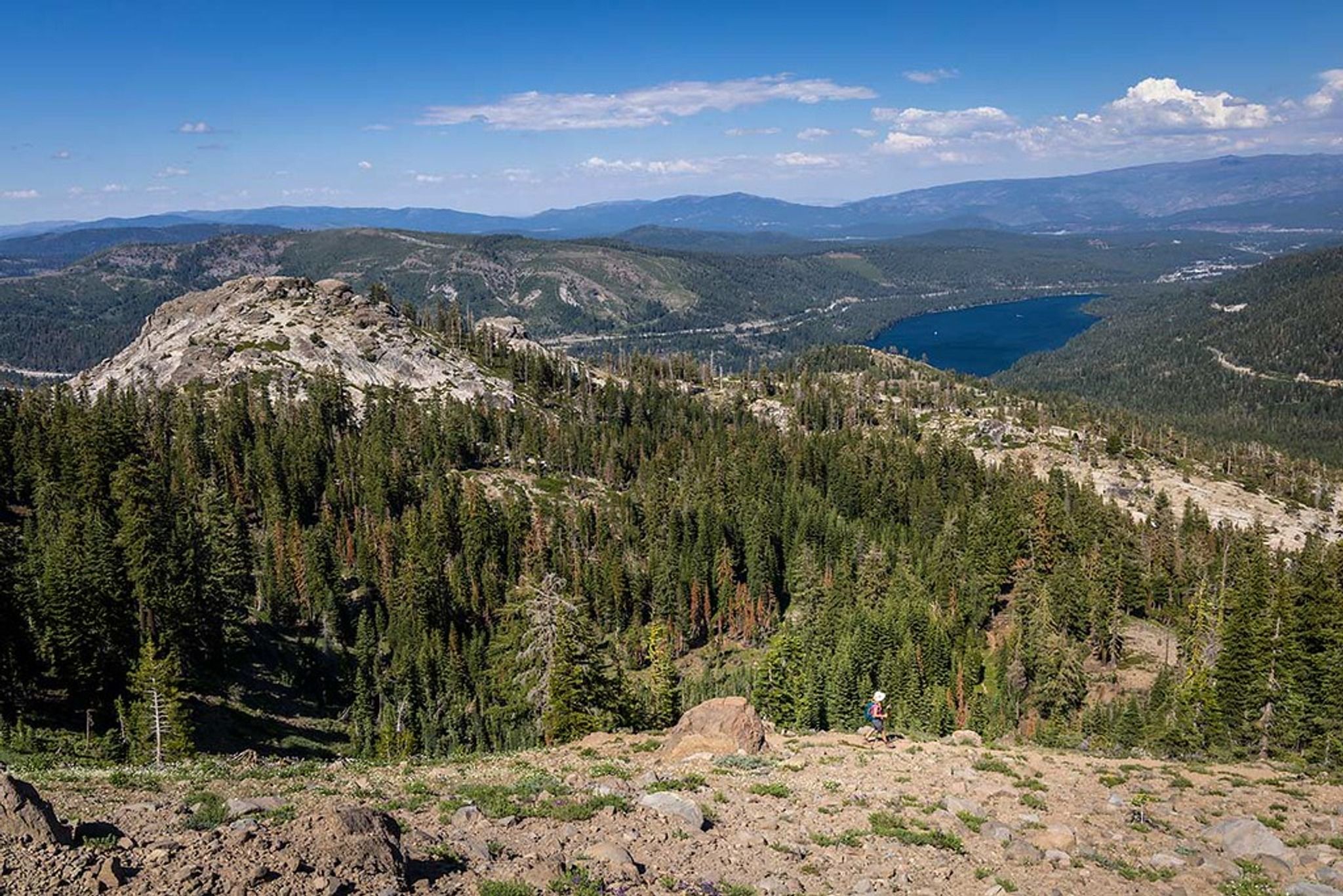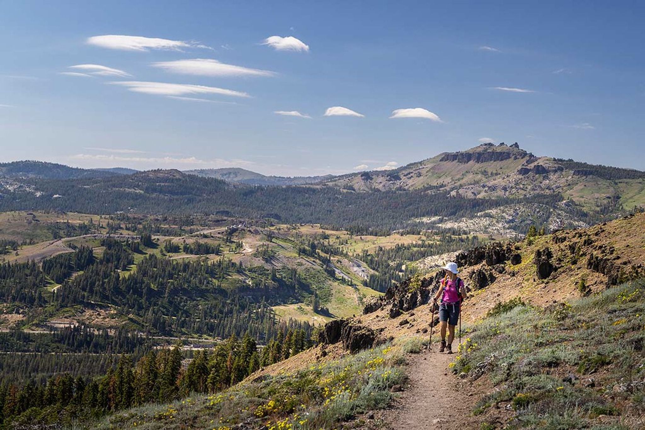 If you're looking for a scenic and moderately challenging hike near Truckee, California, the Mt Judah Loop trail is a great option. This approx 5.2-mile loop trail (although it always seems longer to me) takes you through beautiful forests and offers stunning views of the surrounding mountains and lakes. Getting There: To get to the Mt Judah Loop trailhead, drive west on I-80 from Truckee and take the Soda Springs exit. Turn right on Donner Pass Road and drive for about 2 miles until you reach the Pacific Crest Trailhead at the top of the summit. The Hike: The Mt Judah Loop trail starts at the Pacific Crest Trailhead and follows the Pacific Crest Trail (PCT) for about a mile before branching off onto the Mt Judah Loop trail. The couple hundred yards of the hike is relatively easy, as you make your way through the forest. Then the trail starts to climb steadily towards the summit of Mt Judah. The ascent to the summit is the most challenging part of the hike, as the trail becomes steeper and rockier. But the effort is well worth it, as you are rewarded with stunning views of the surrounding mountains and Donner Lake. From the summit of Mt Judah, you can see all the way to Lake Tahoe on a clear day. After enjoying the views from the summit, the trail descends on the other side of the mountain with views of Sugar Bowl Ski Resort. This part of the hike is less strenuous but requires careful footing, as the trail is rocky and uneven. If you time it right, this is one of my favorite hikes for seeing wildflowers.