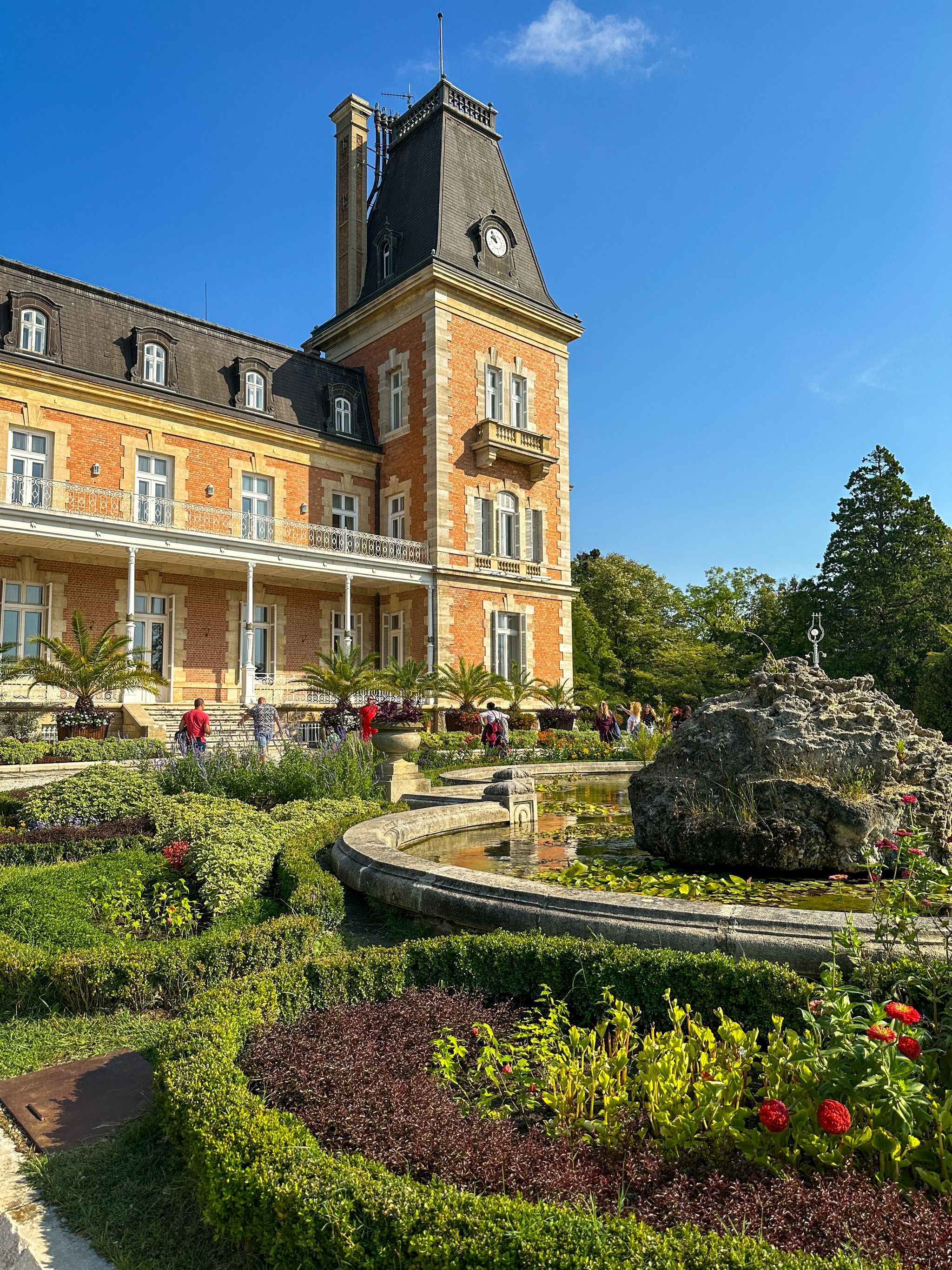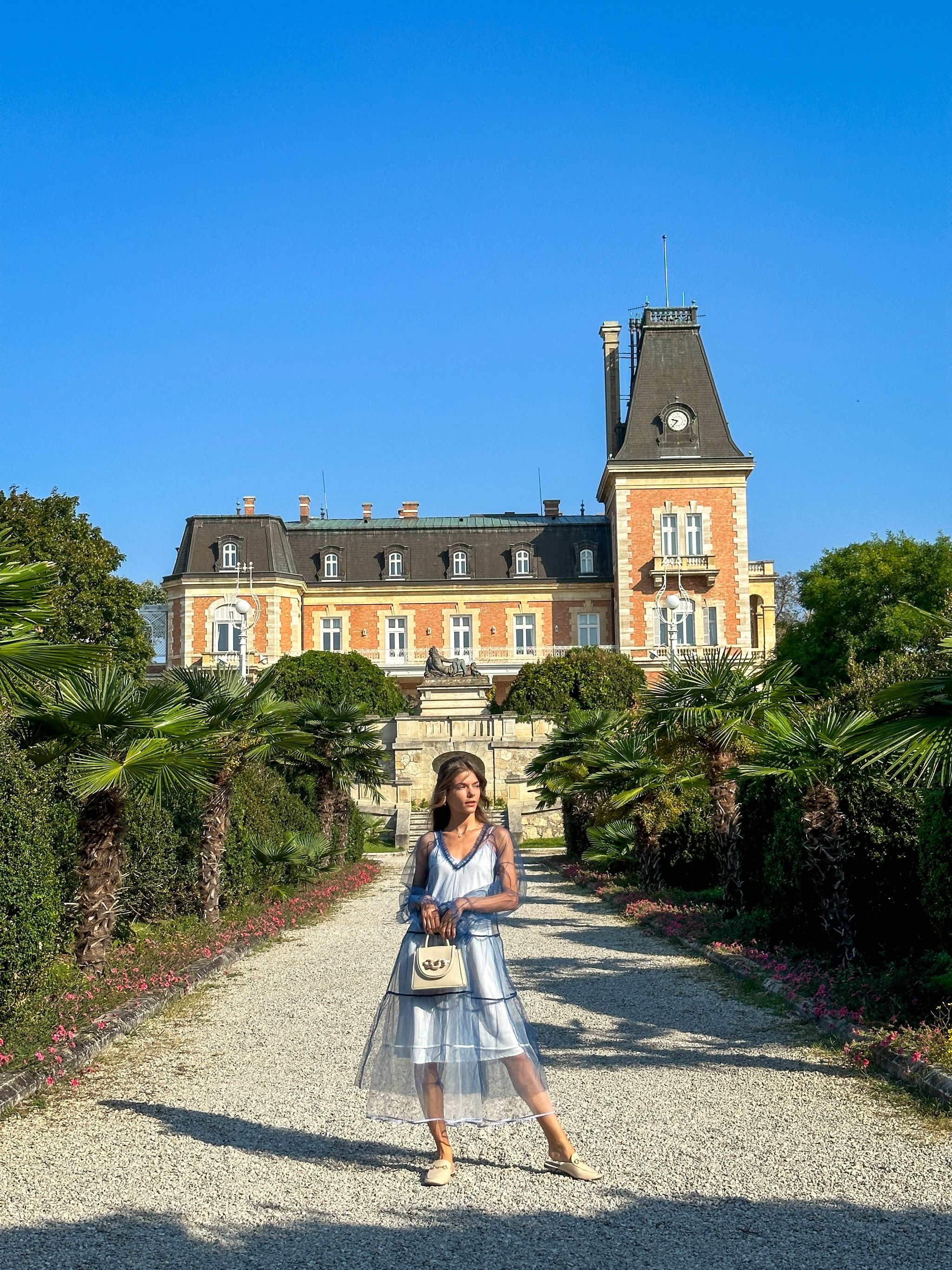 A palace with a French garden and an English park