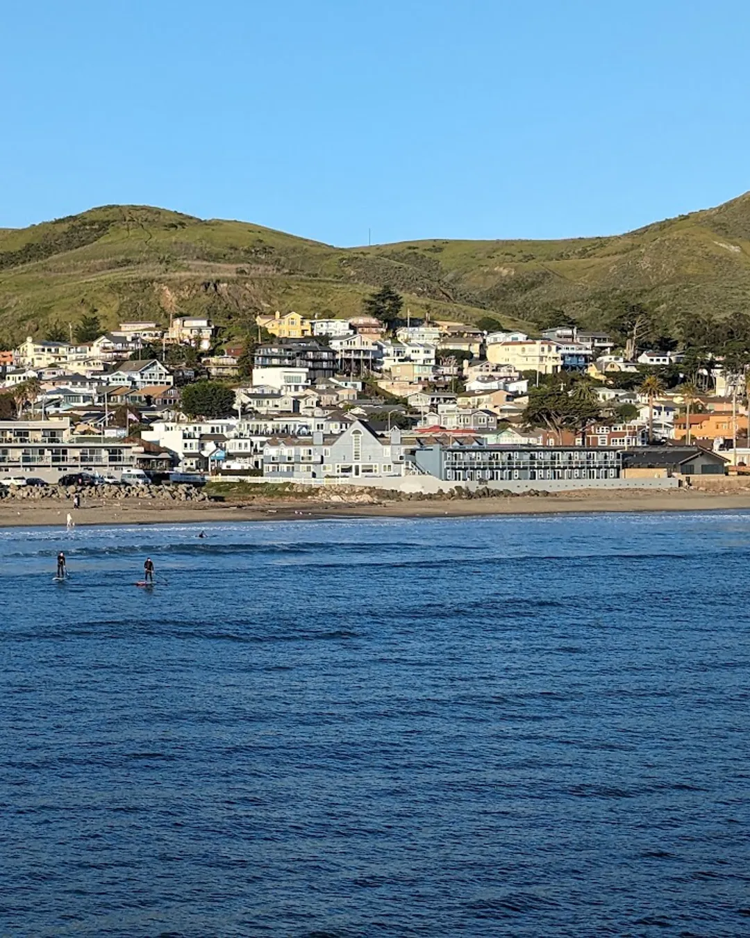 Relaxed beach with surfers' charm