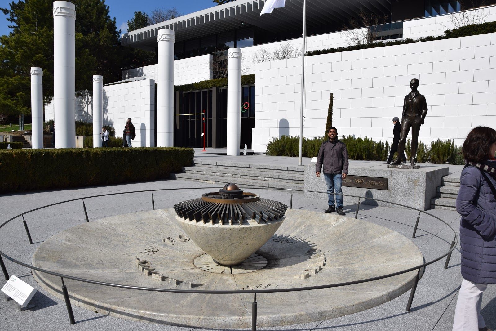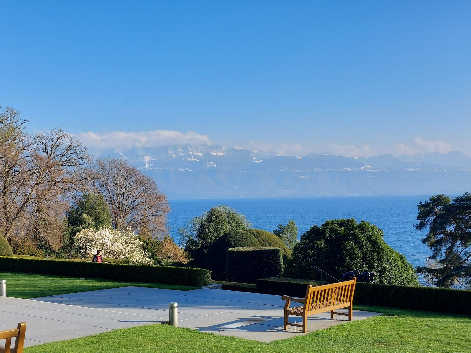 看完博物館,別急著離開!博物館外面就是超美的 奧運公園,這裡有奧運聖火台、奧運五環雕塑、各種運動主題的藝術裝置,還能俯瞰 日內瓦湖(Lac Léman),風景美到炸裂!