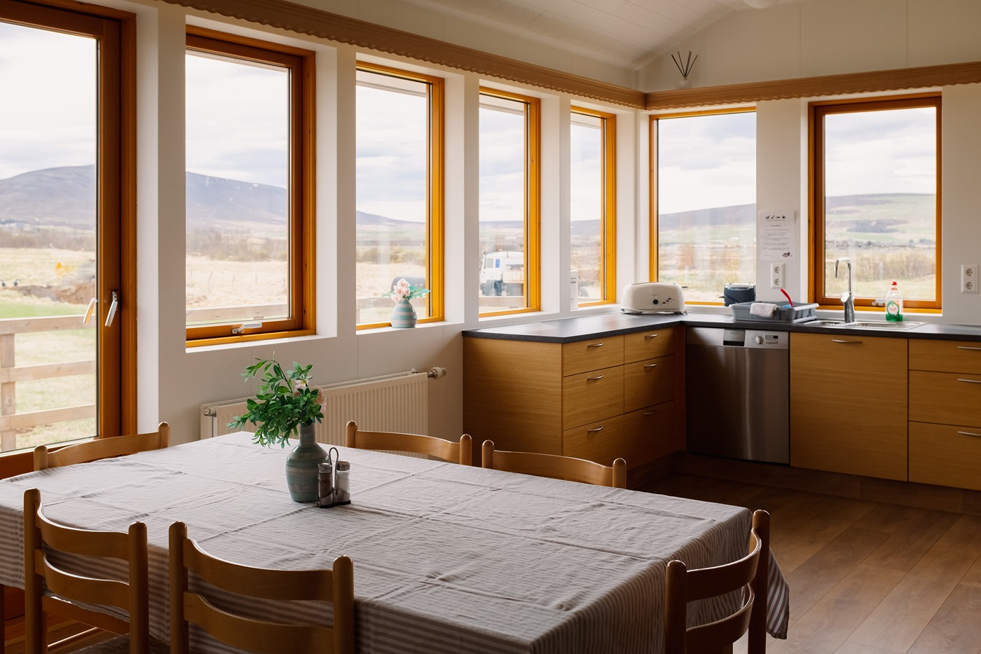 Guesthouse Brekka is a charming and cozy accommodation located near the town of Húsavík in northeastern Iceland, close to the scenic Laxá River. Surrounded by stunning landscapes, this guesthouse offers comfortable rooms with beautiful views, an on-site restaurant serving delicious Icelandic cuisine, and free Wi-Fi throughout the property. Ideal for nature lovers, it provides easy access to whale watching tours, hiking trails, and opportunities to see the Northern Lights in winter. Guesthouse Brekka is perfect for those seeking a serene and authentic Icelandic experience.