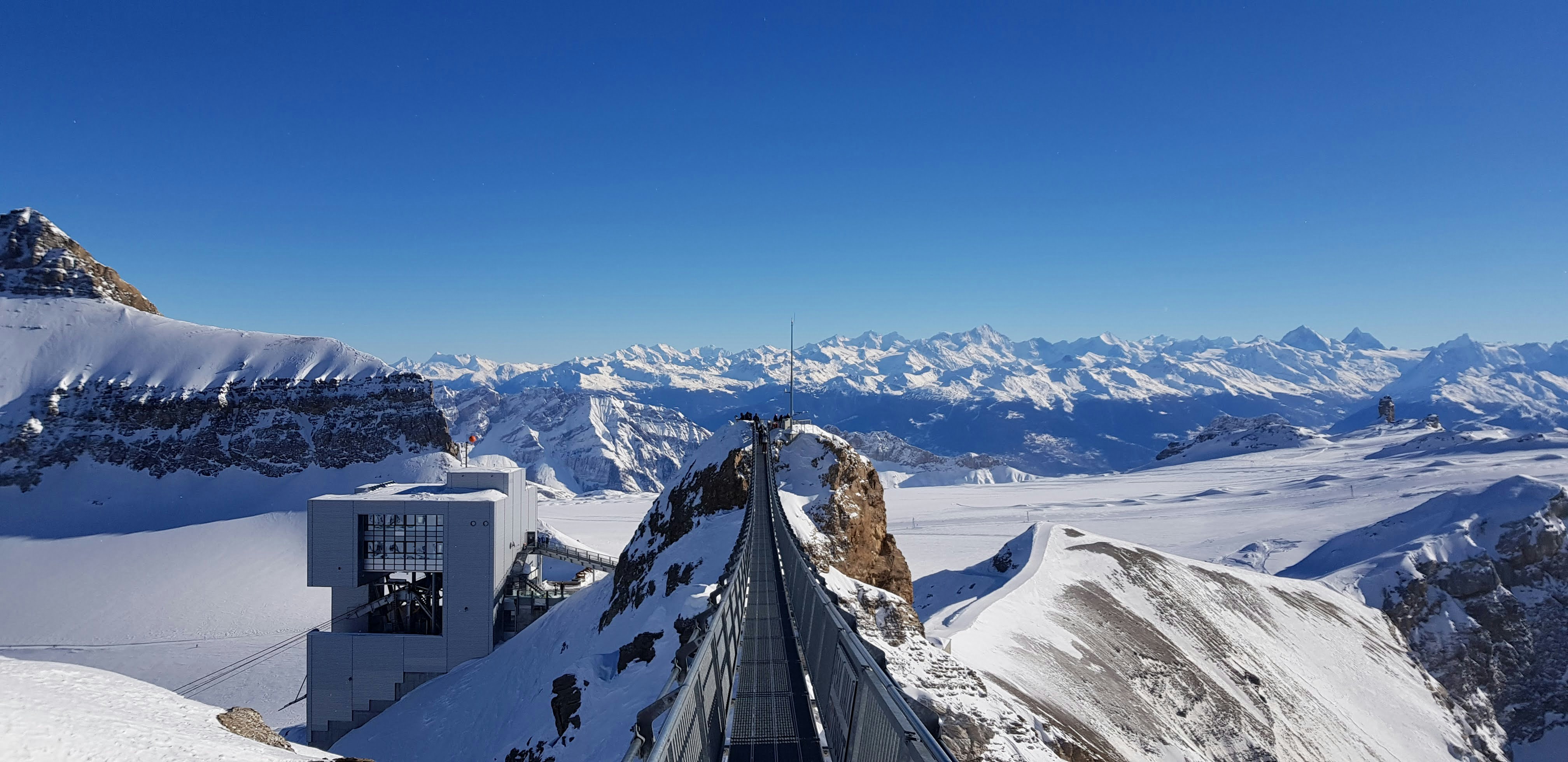 Peak Walk by Tissot: The world’s first suspension bridge connecting two mountain peaks. The 107-meter bridge offers a thrilling walk with unparalleled views of the surrounding peaks and glaciers.