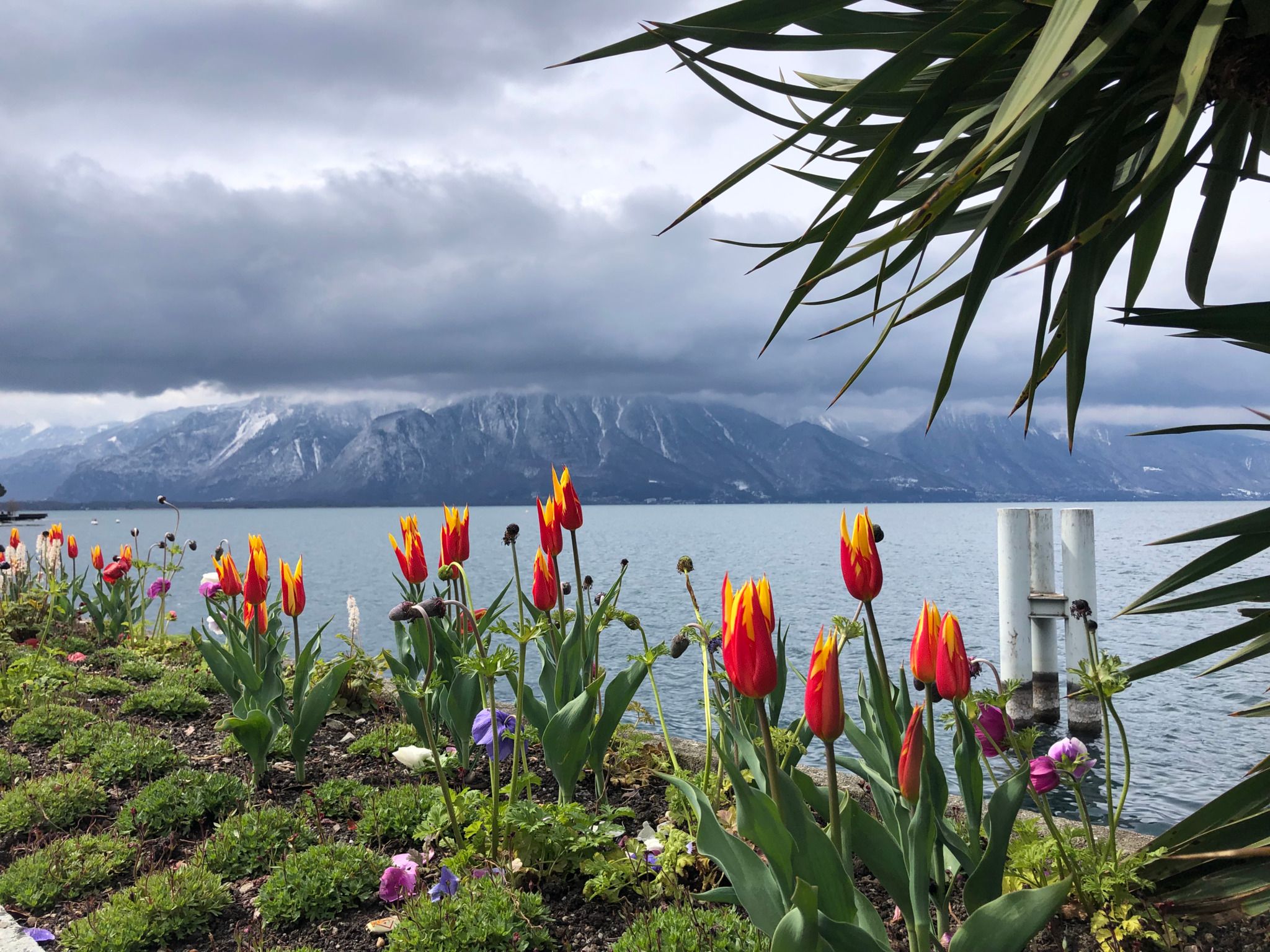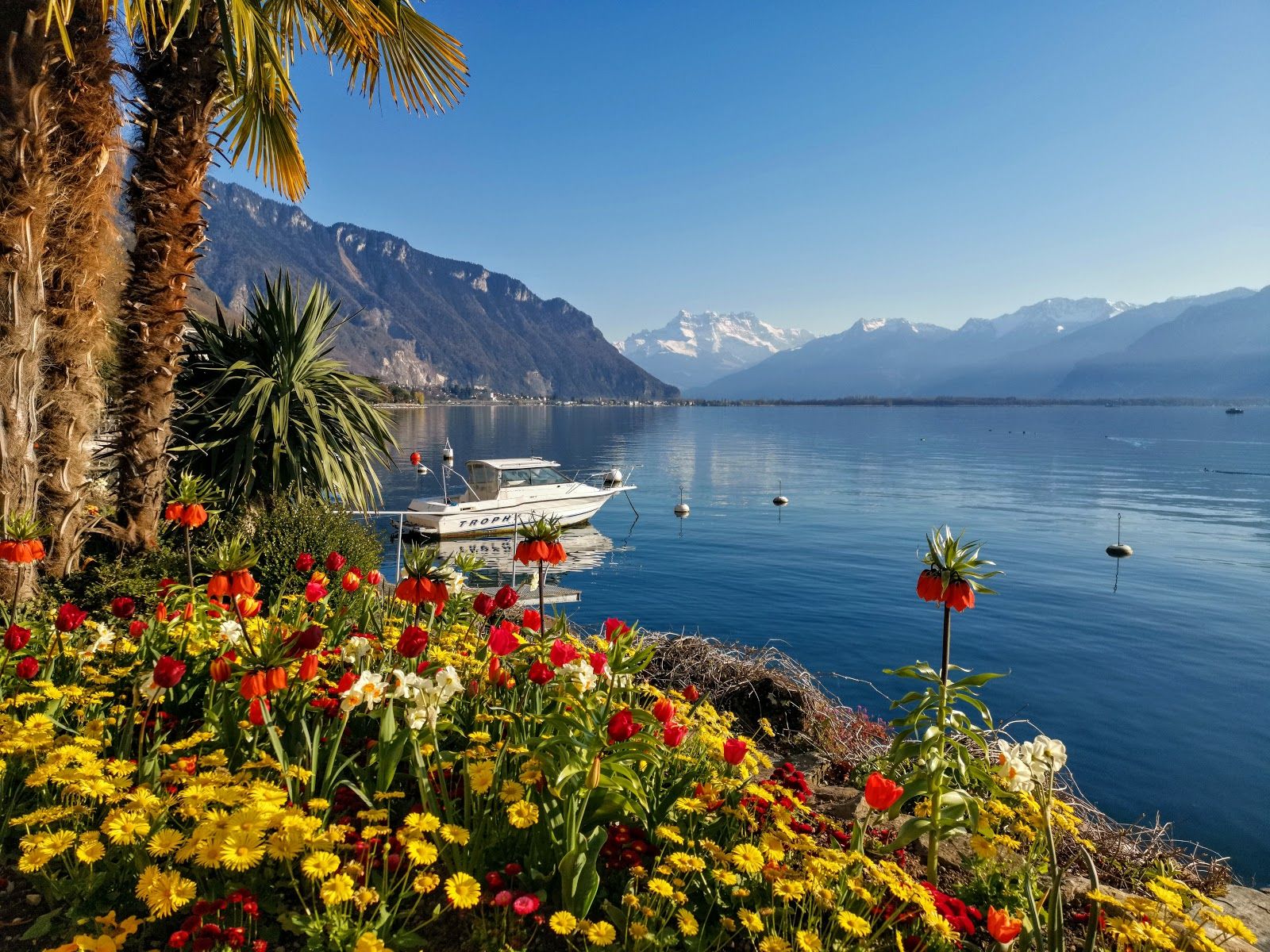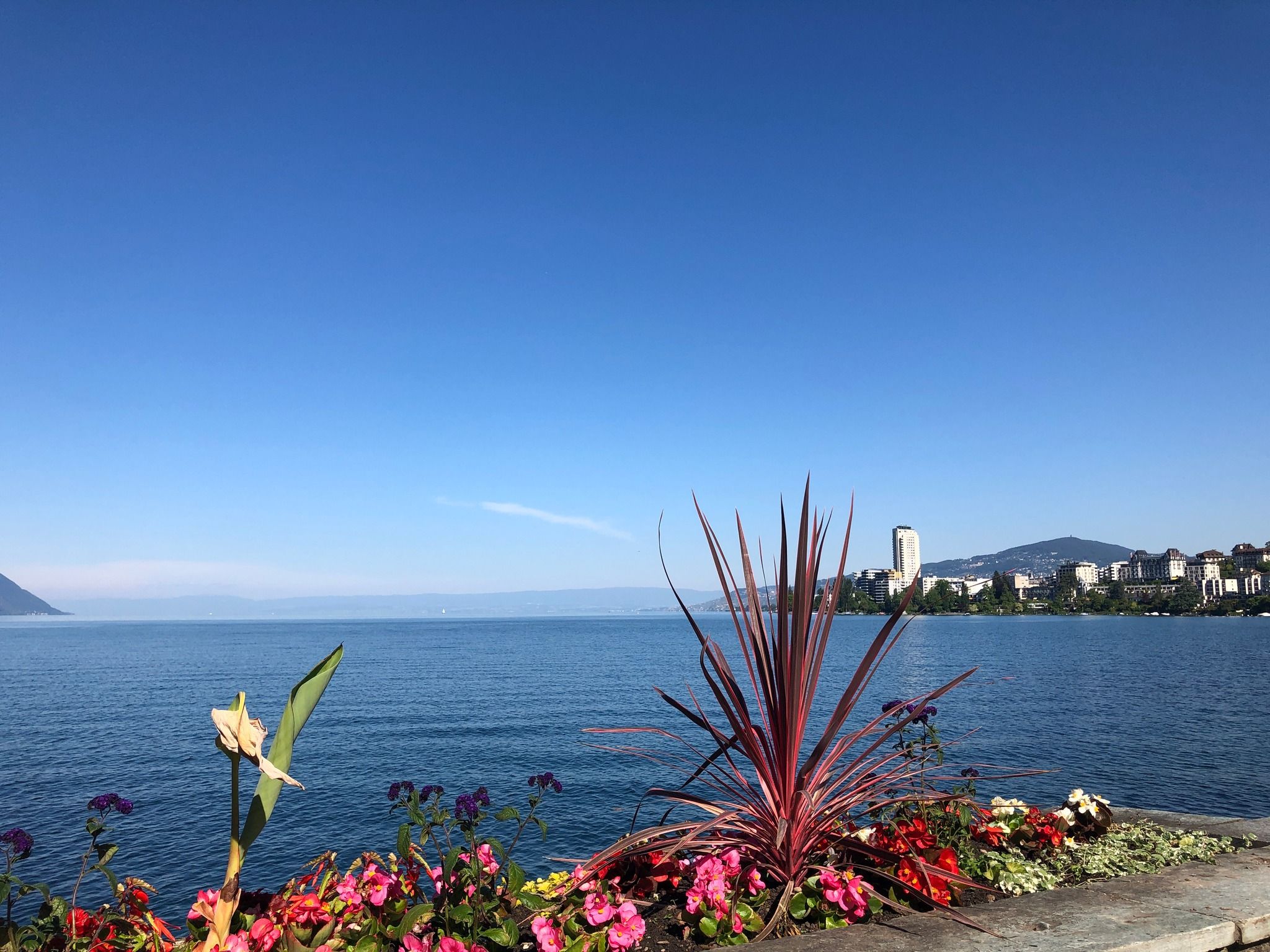 The Montreux Lakeside Promenade is a very scenic walk, stretching along the shores of Lake Geneva with breathtaking views of the water, the Alps and the charming towns along the way. Lined with palm trees, colorful flowers and art installations, the promenade offers a peaceful and picturesque setting for a leisurely stroll.
