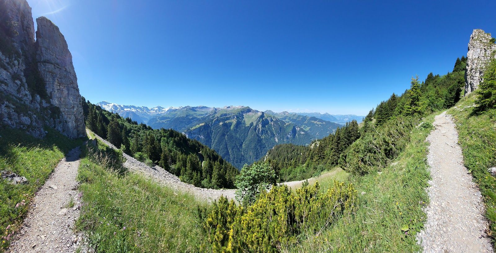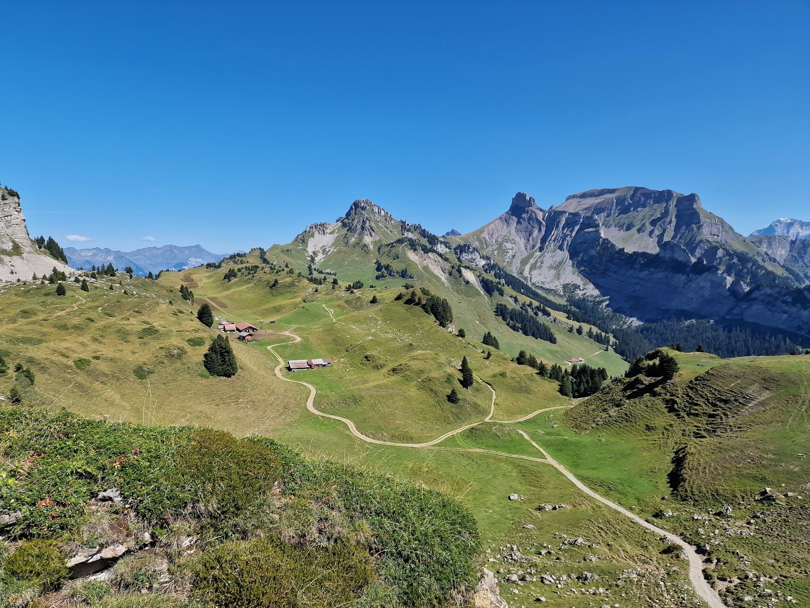 Schynige Platte is a scenic mountain ridge in the Bernese Oberland, offering breathtaking views of the Eiger, Mönch and Jungfrau, as well as Lake Thun, Lake Brienz and the vast Swiss Alps. At 2,076 meters, it’s a perfect spot for hiking, alpine flora spotting and enjoying traditional Swiss mountain charm.